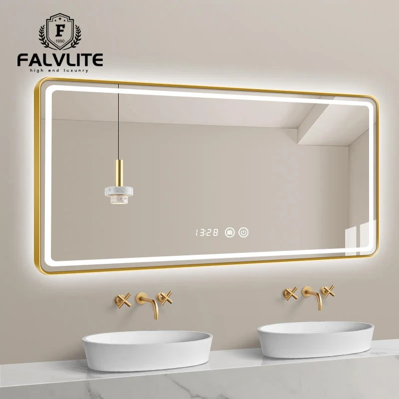 FALVLITスマートミラー 壁掛けアルミニウム合金バスルームミラー LEDタッチ式防曇ミラー 洗面所用ライト付きミラー - スタイリッシュなデザインで、毎日の美容をサポート!