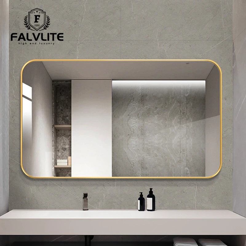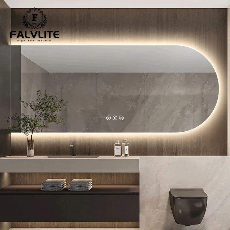 FALVLITEバスルームミラー - 背面照明付きLEDスマート化粧鏡、曇り止め機能付き、壁掛けデザインでおしゃれなトイレ空間を演出!