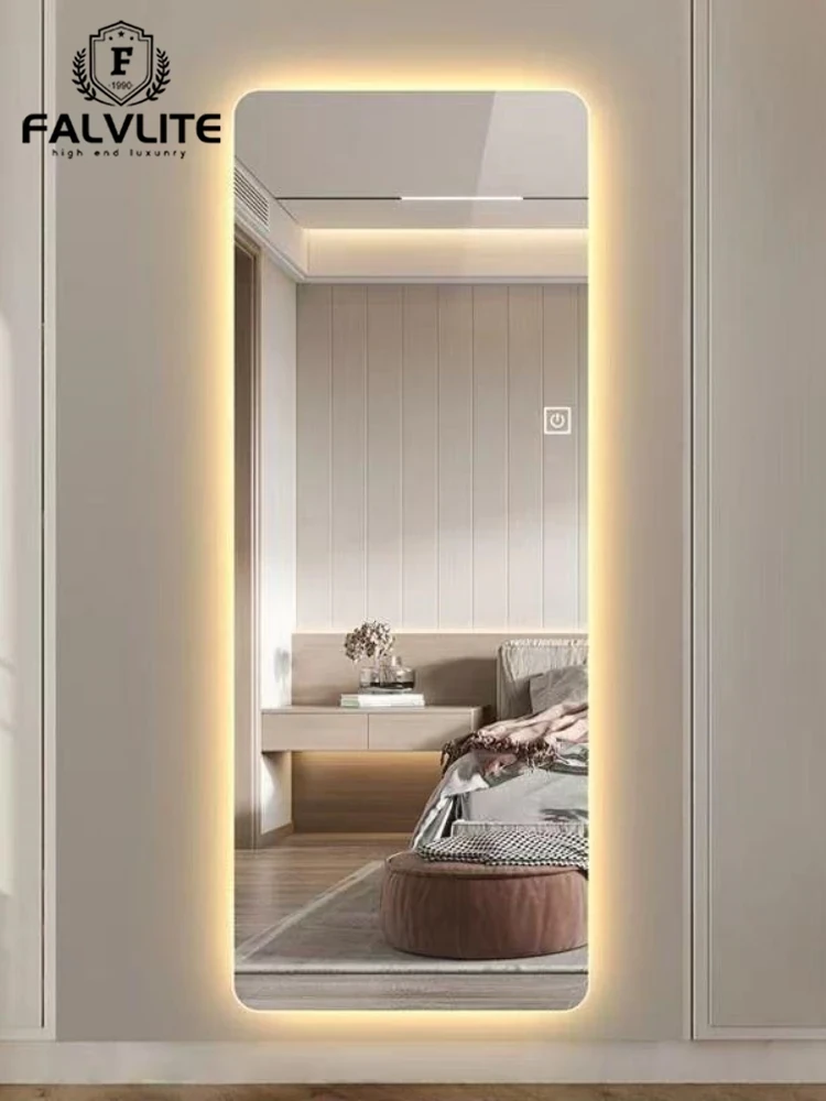 FALVLITE スマート全身鏡 - タッチスクリーン付き壁掛け式LEDライトメイクアップミラー!明るい照明で美しさを引き出し、スタイリッシュなデザインでお部屋を華やかに演出します。
