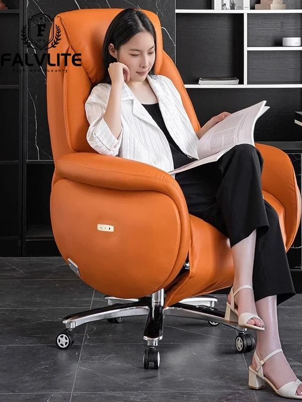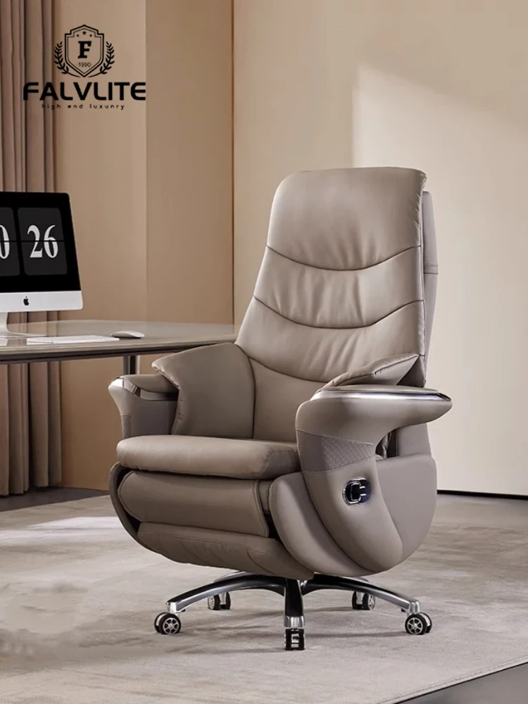 FALVLITE Ergonomic Electric Reclining Executive Chair - Luxurious Genuine Leather Office Chair for Ultimate Comfort During Long Hours of Work