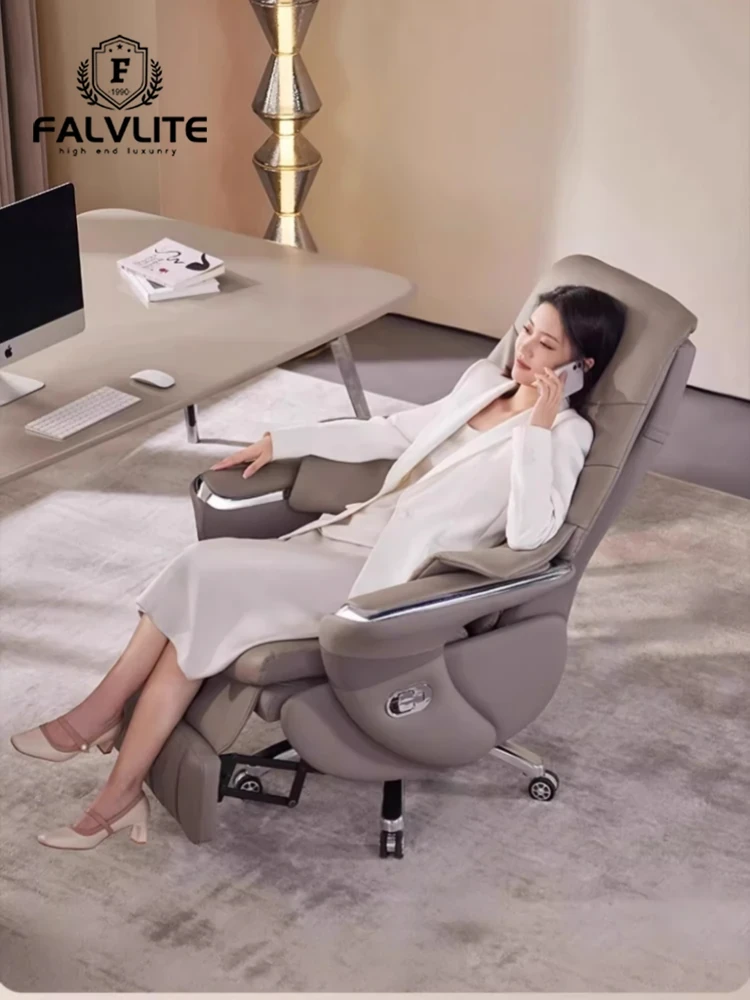 FALVLITE Ergonomic Office Chair for Women - Comfortable Long Sitting Business Seat, Luxurious Leather Recliner for Home and Office Use, Perfect for Work and Relaxation