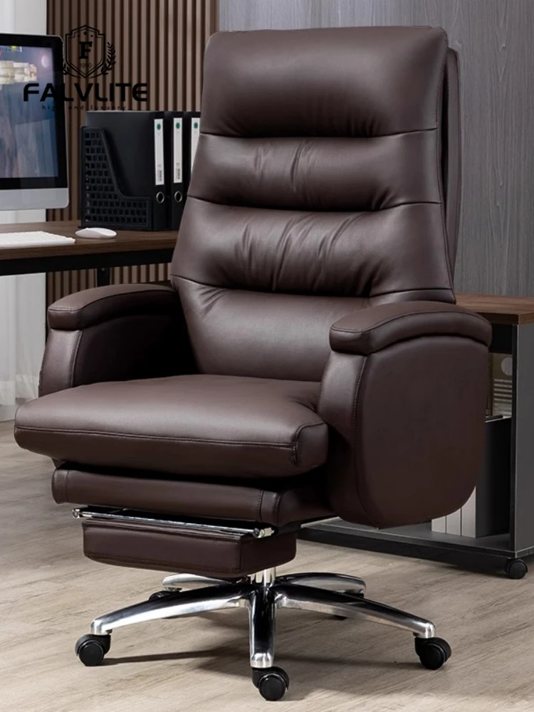 FALVLITE Genuine Leather Executive Chair - Ultimate Comfort for Long Hours, Home Office Ergonomic Design with Recline and Massage Features, Sleek and Stylish for Business or Study