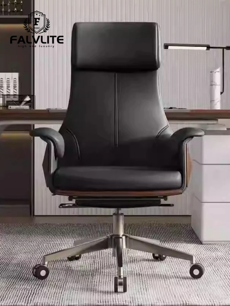 FALVLITE Genuine Leather Reclining Office Chair - Stylish Executive Desk Chair for Home, Study, and Gaming - Ergonomic Comfort with Adjustable Backrest