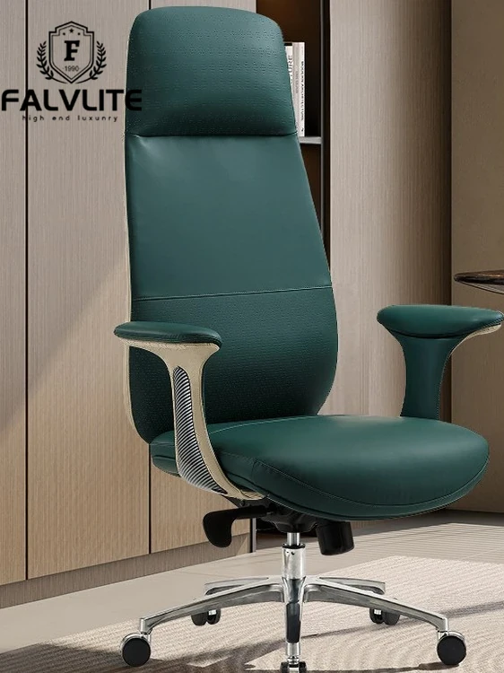 FALVLITE Ergonomic Office Chair - Comfortable Executive Desk Chair with High Back, Perfect for Home and Study, Features Genuine Leather Upholstery for Long Hours of Sitting