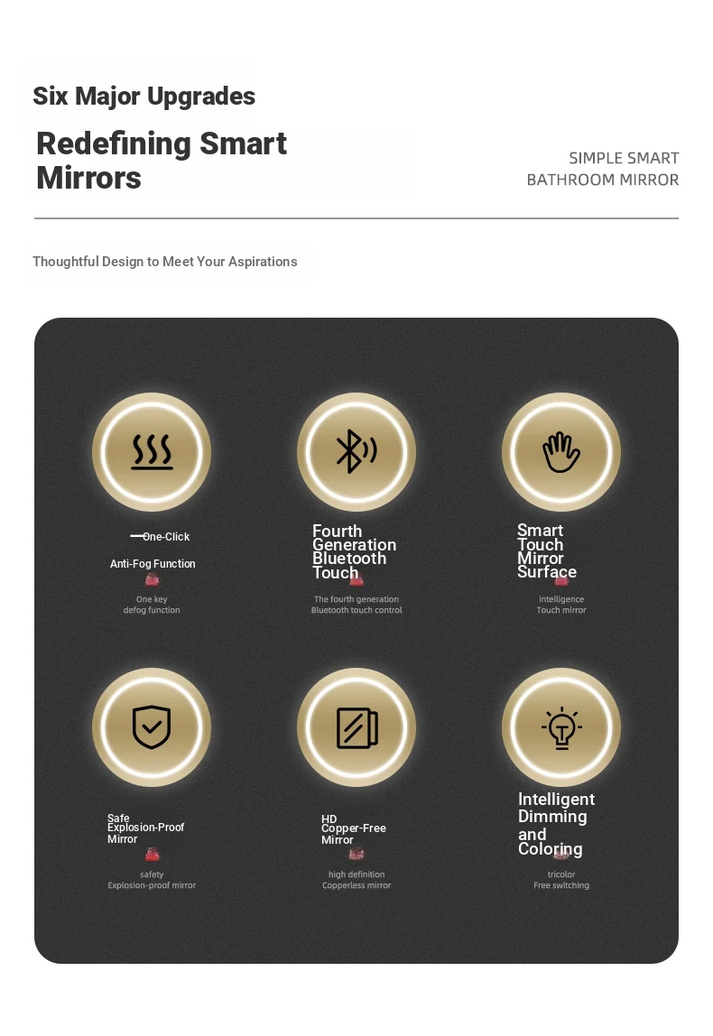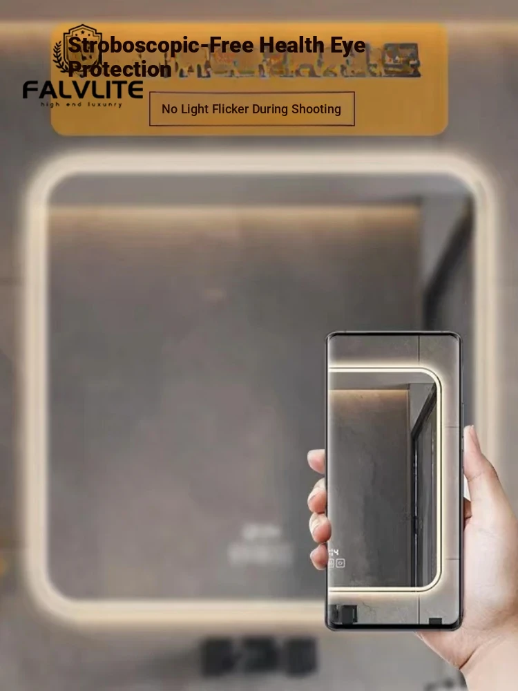 FALVLITE Anti-Fog LED Wall-Mounted Bathroom Mirror with Bluetooth Touch Screen - Perfect for Makeup and Grooming, Built-in Lighting and Easy Installation