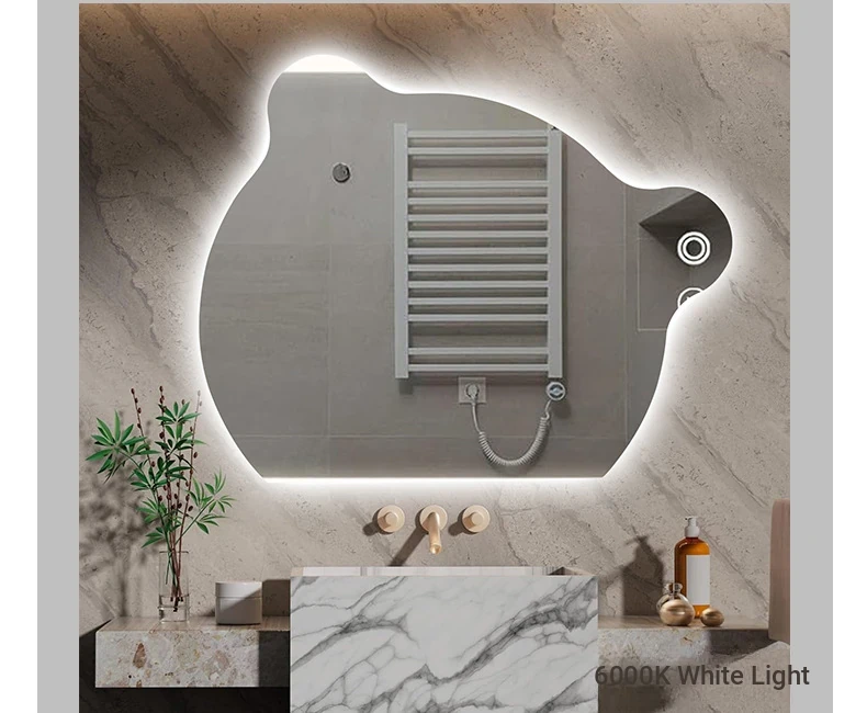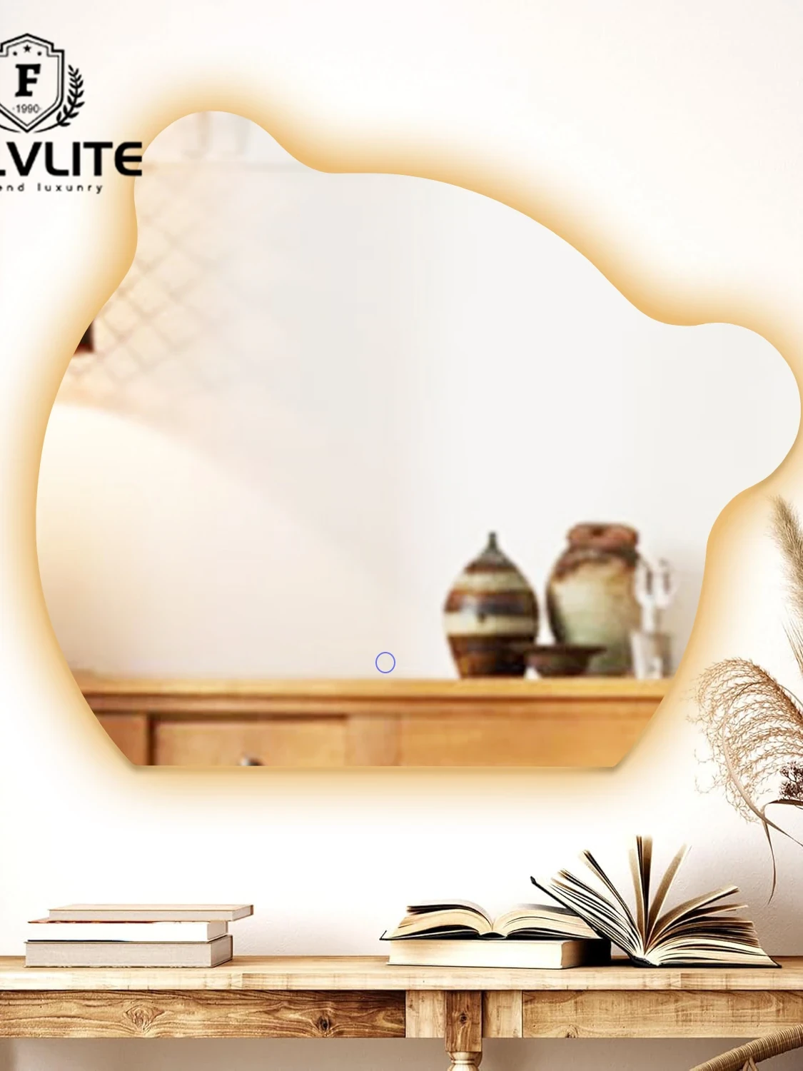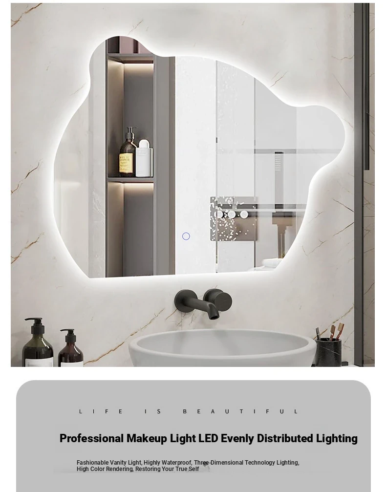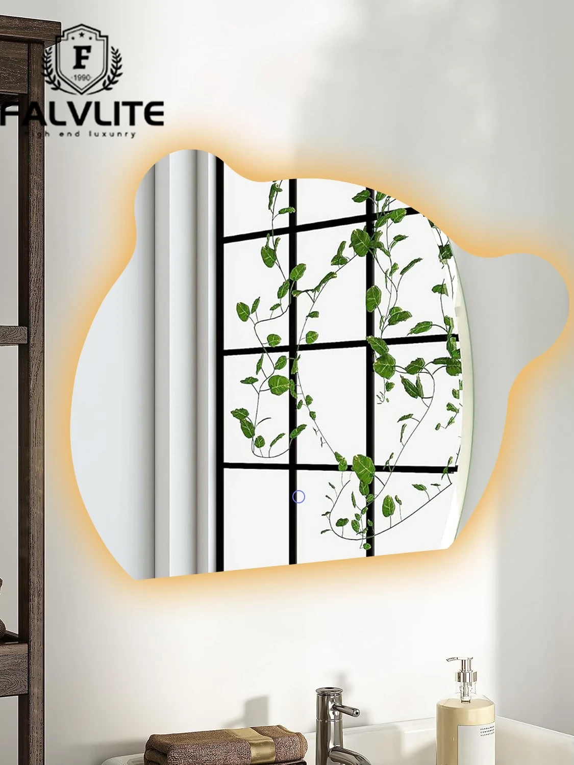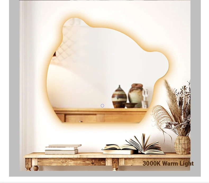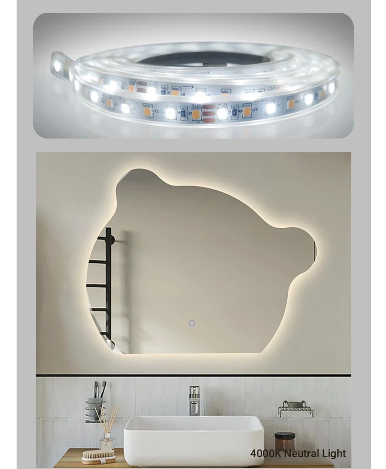 FALVLITE Cute Bear LED Smart Glow Bathroom Mirror - Self-Adhesive, Irregular Shaped Wall-Mounted Trendy Mirror for a Charming Touch in Your Space