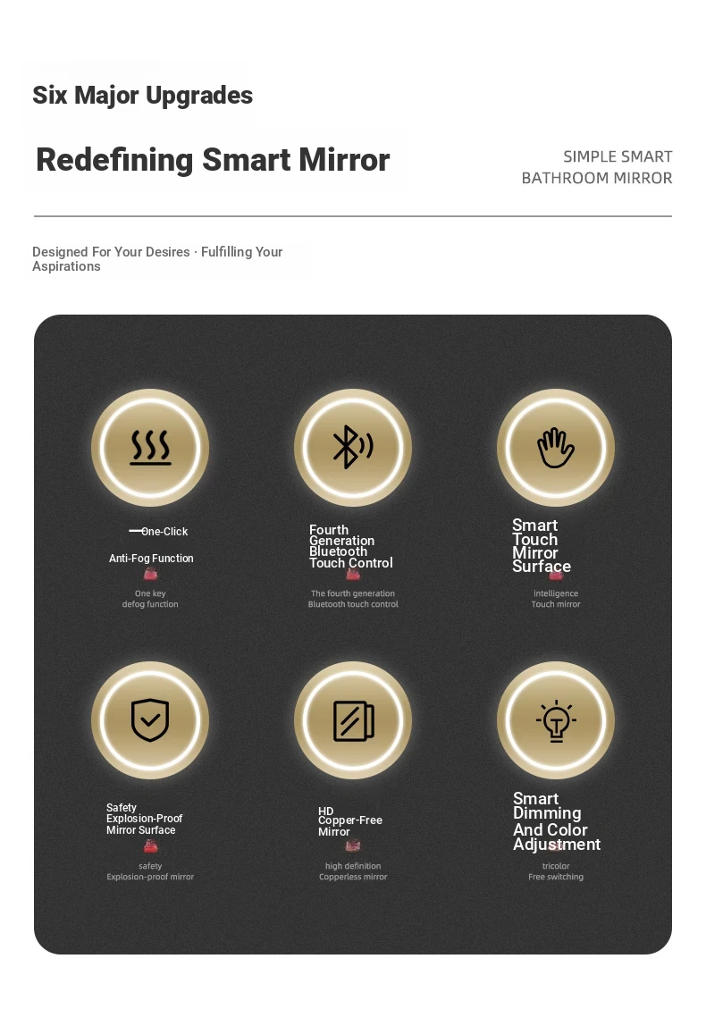 FALVLITE LED Wall-Mounted Bathroom Mirror with Bluetooth Touch Control – Perfect for Home Use, Ideal for Makeup and Grooming in Your Bathroom