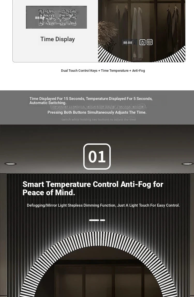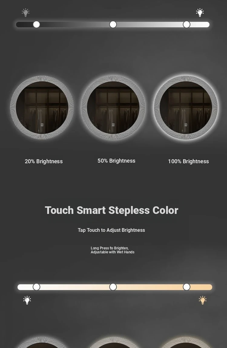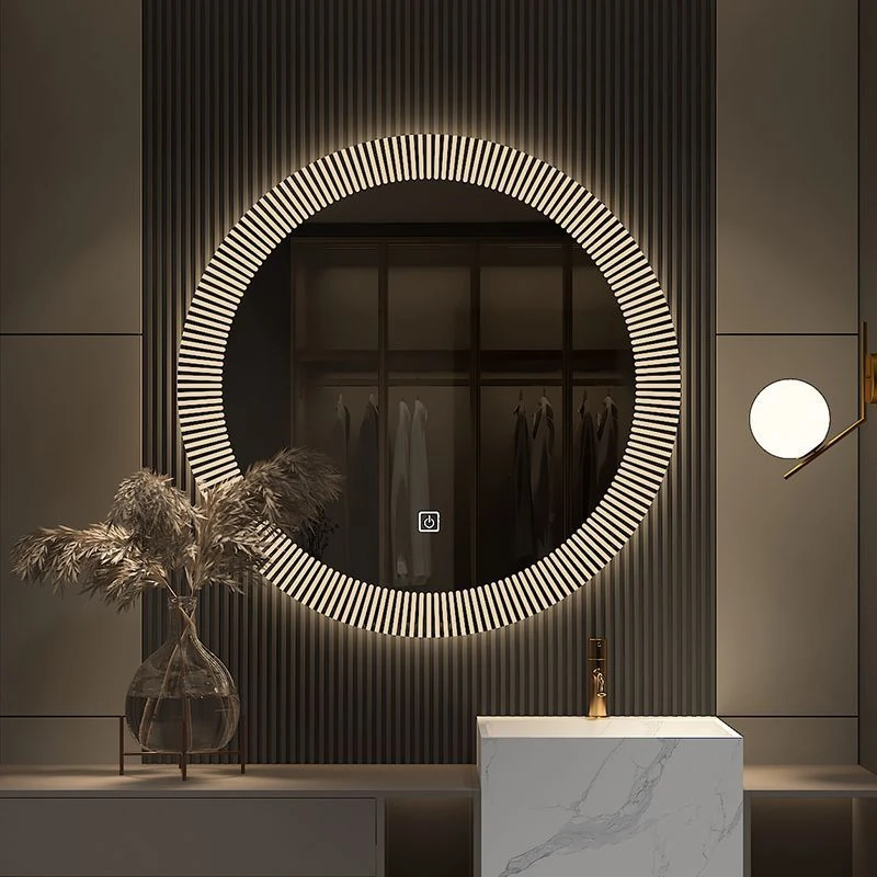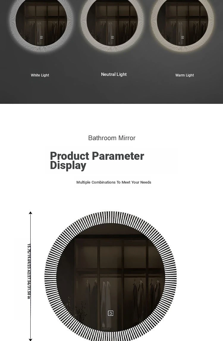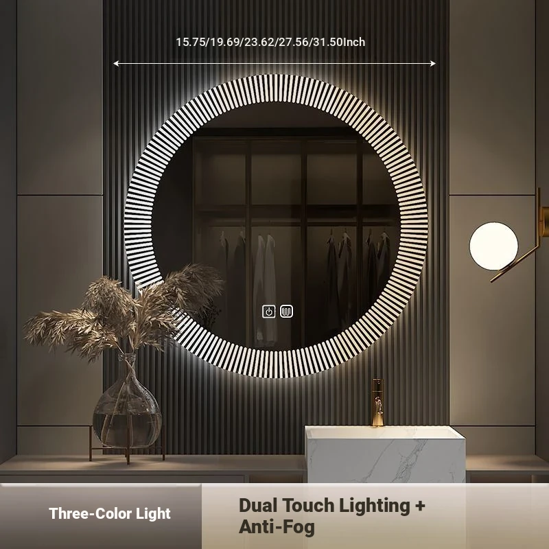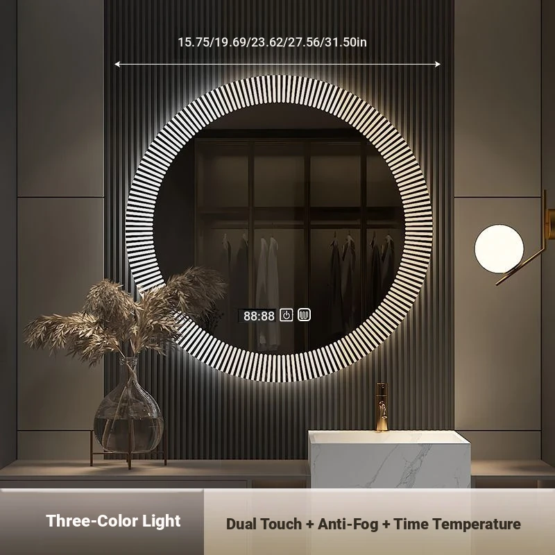 FALVLITE Round Smart Mirror with Touch Screen LED Light - Creative Wall-Mounted Bathroom Makeup Mirror, No Drilling Required! Perfect for Your Daily Beauty Routine.
