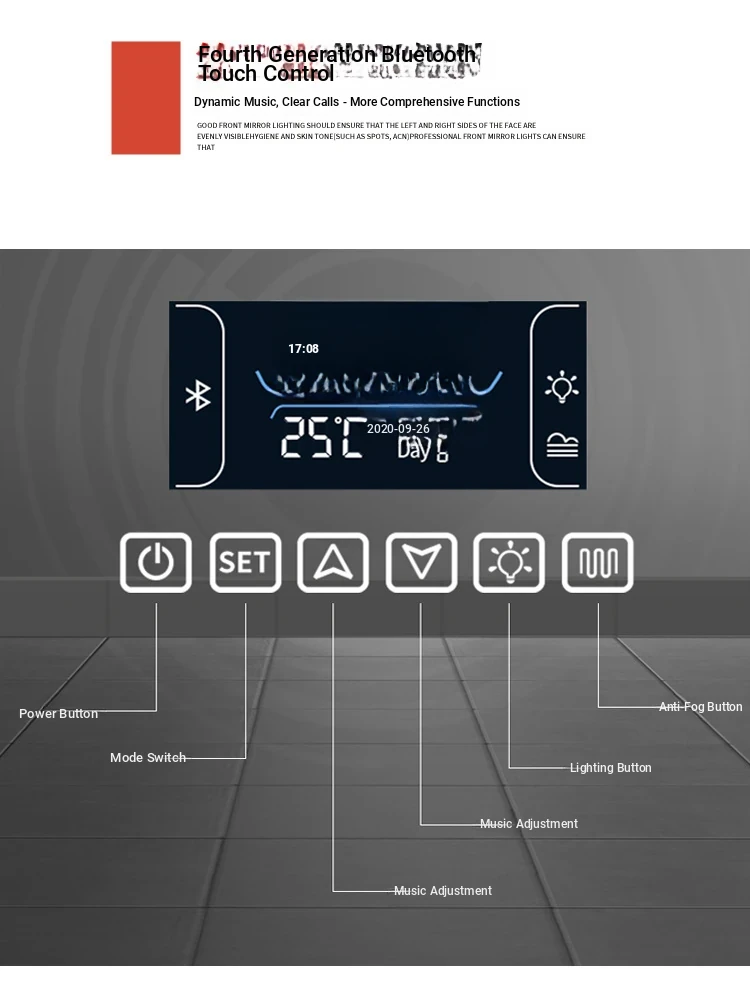 [Luxury] three-color light switch + Six-key Bluetooth + Defog + call music + time display