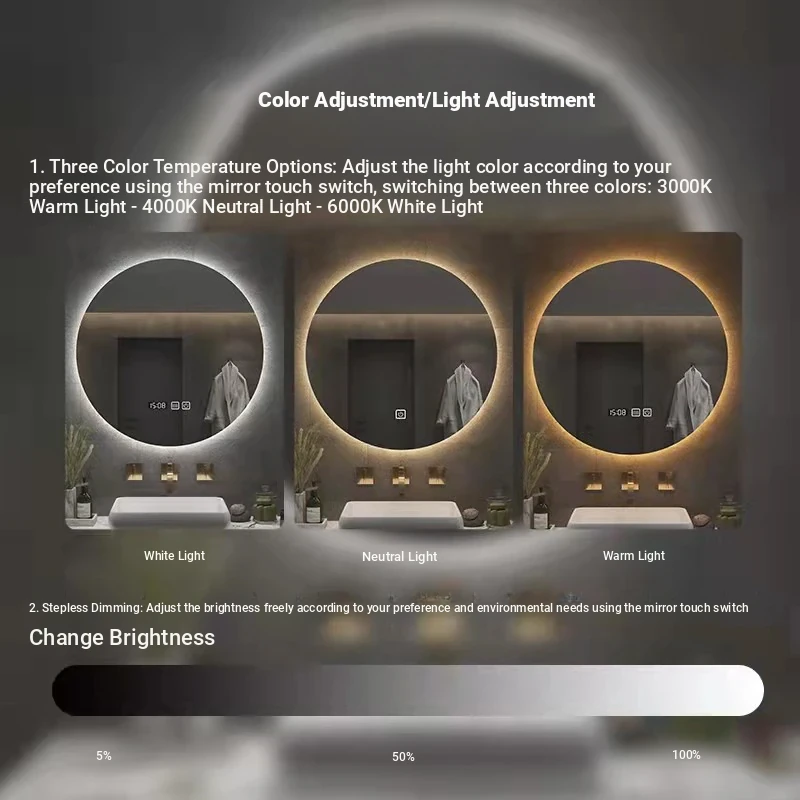 FALVLITE Smart LED Round Makeup Mirror - Anti-Fog Illuminated Vanity Mirror for Bathroom - No Drilling Required, Perfect for a Stylish and Functional Space