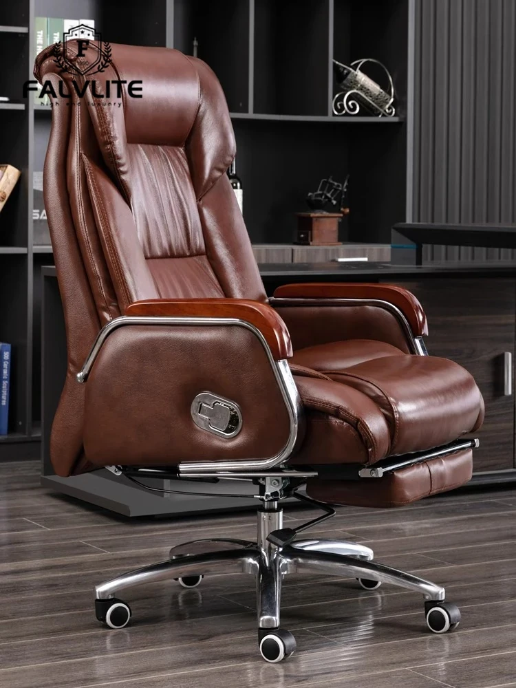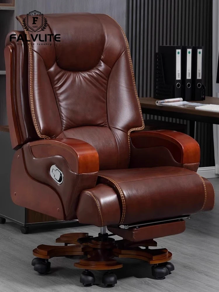 FALVLITE Executive Leather Reclining Office Chair - Premium Genuine Leather, Solid Wood Construction, Comfortable for Long Hours, Perfect for Boss and CEO.