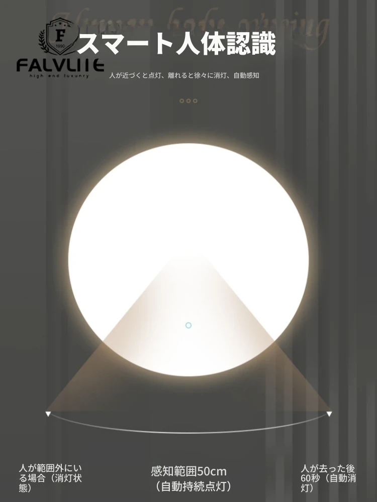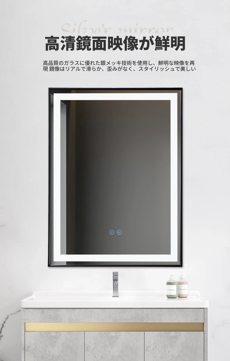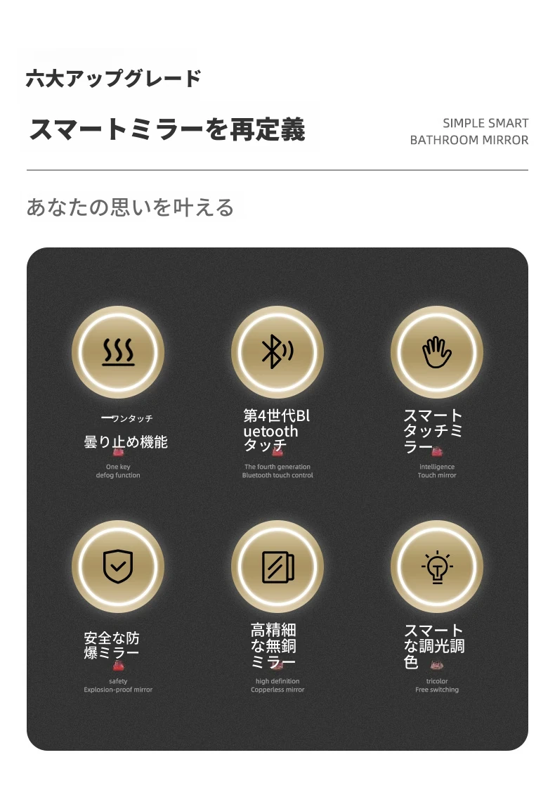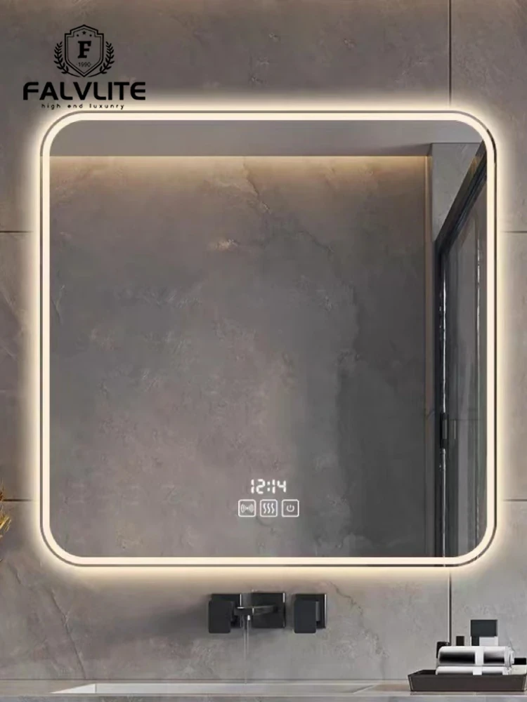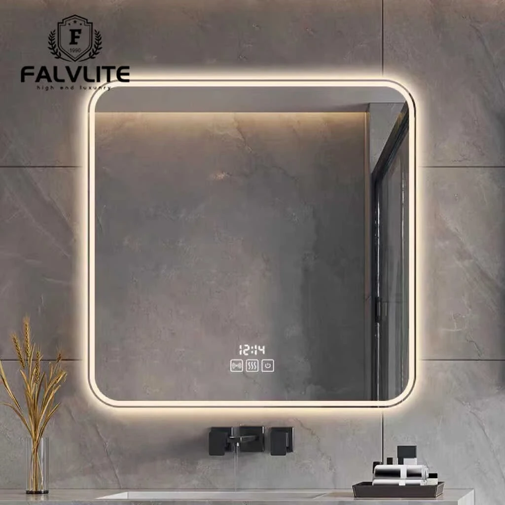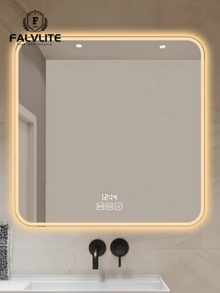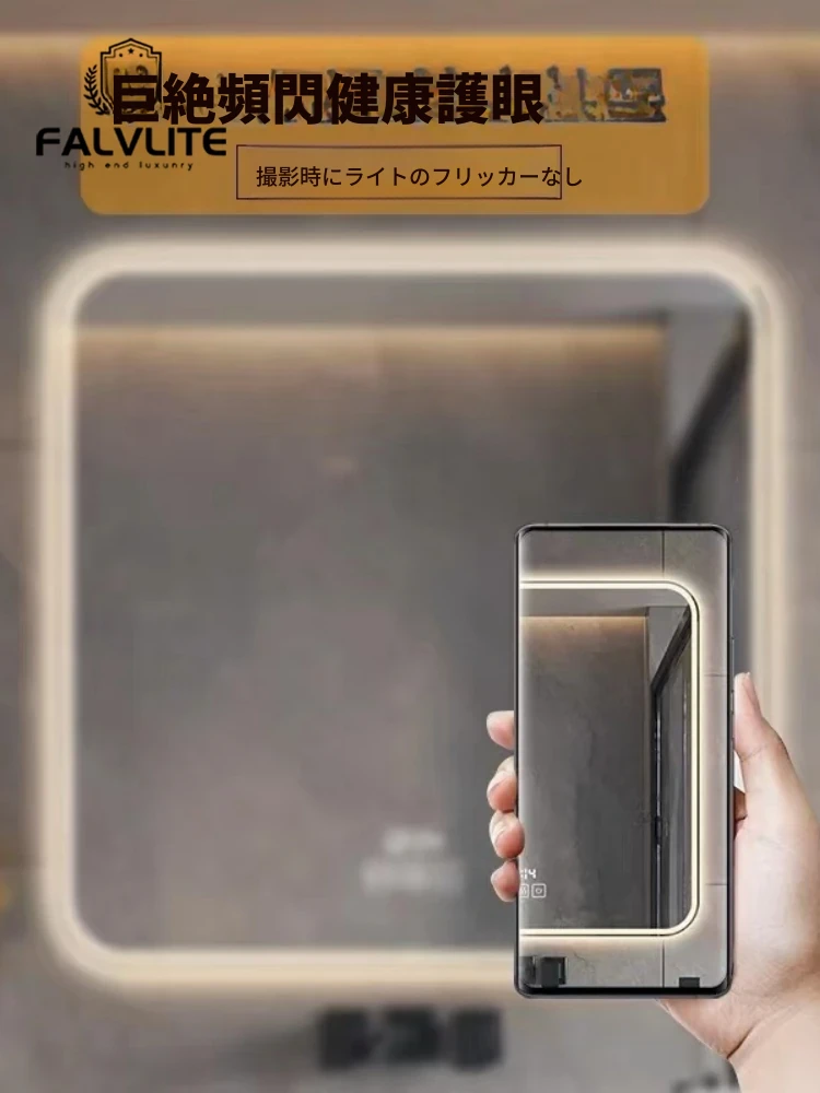 FALVLITE防霧壁掛けLED化粧鏡 - スマートタッチスクリーン搭載!Bluetooth接続で音楽も楽しめる!洗面所をスタイリッシュに彩る必須アイテム!