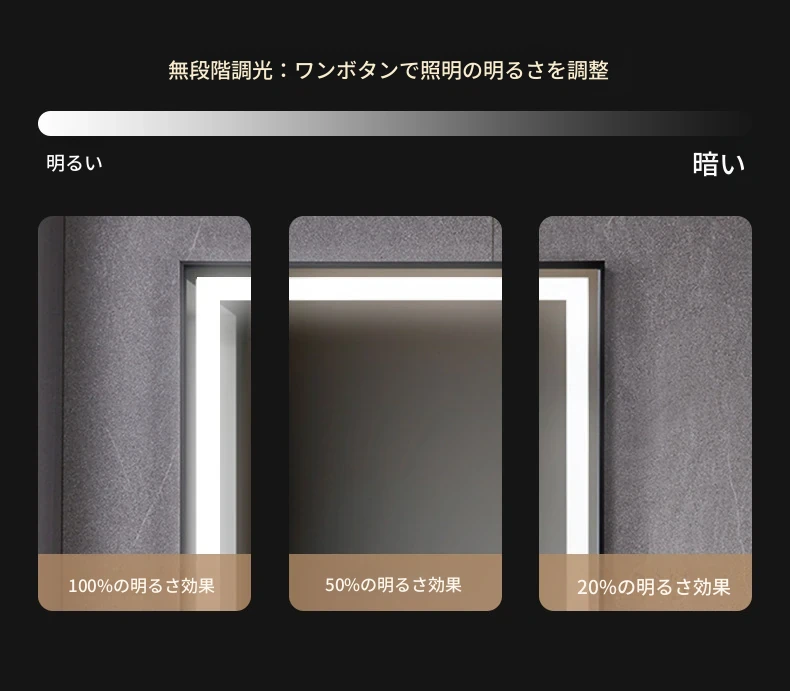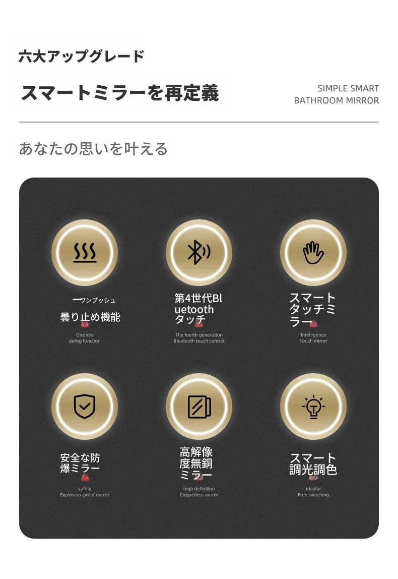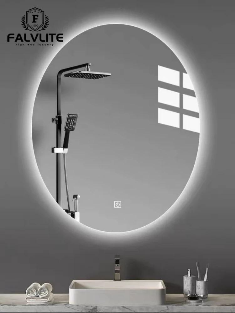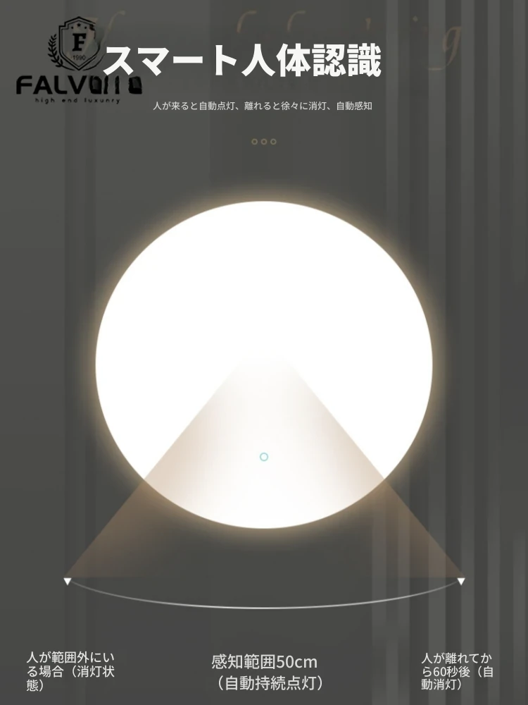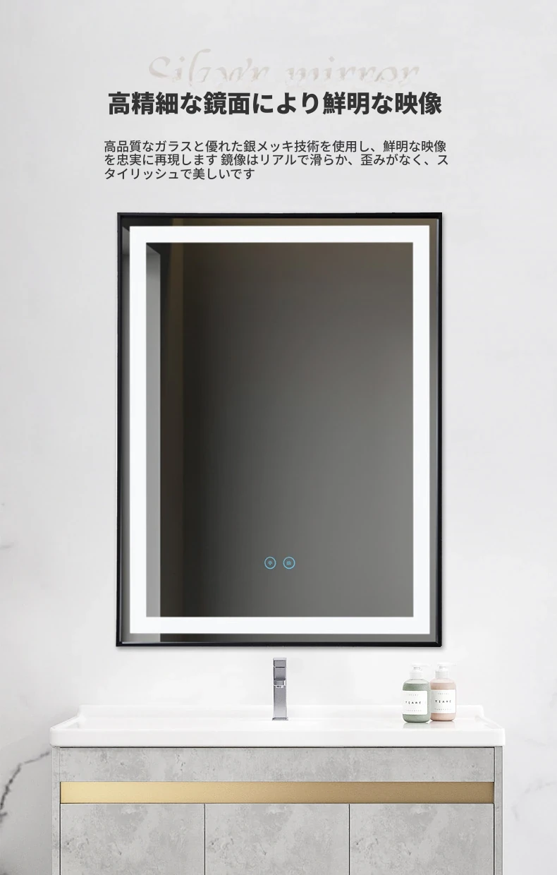 FALVLITE 防雾LED壁掛け化粧鏡 - Bluetoothタッチコントロール付き!おしゃれなバスルームを演出し、毎日のメイクをもっと楽しく。穴あけ不要で簡単取り付け、清潔感あふれる空間を実現!