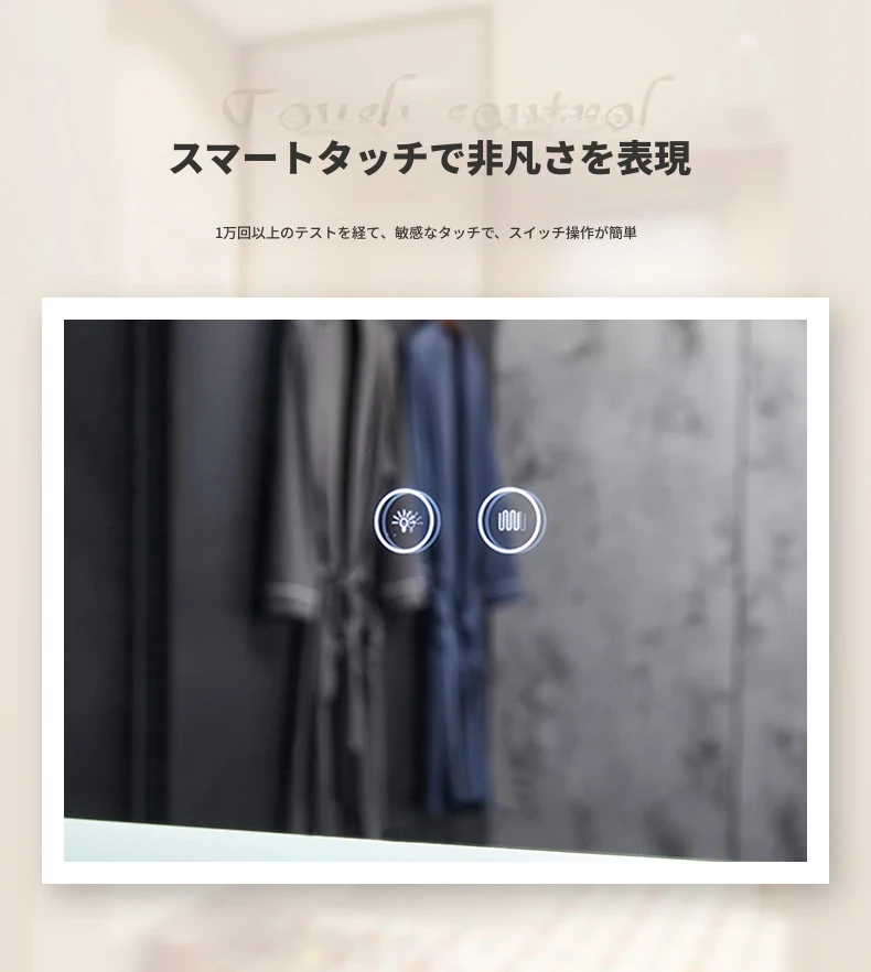 FALVLITE LED壁掛けバスルームミラー - Bluetoothタッチコントロール機能付き!おしゃれで便利な化粧ミラー、浴室やトイレに最適。美しい照明で、毎日のスキンケアやメイクをサポートします。