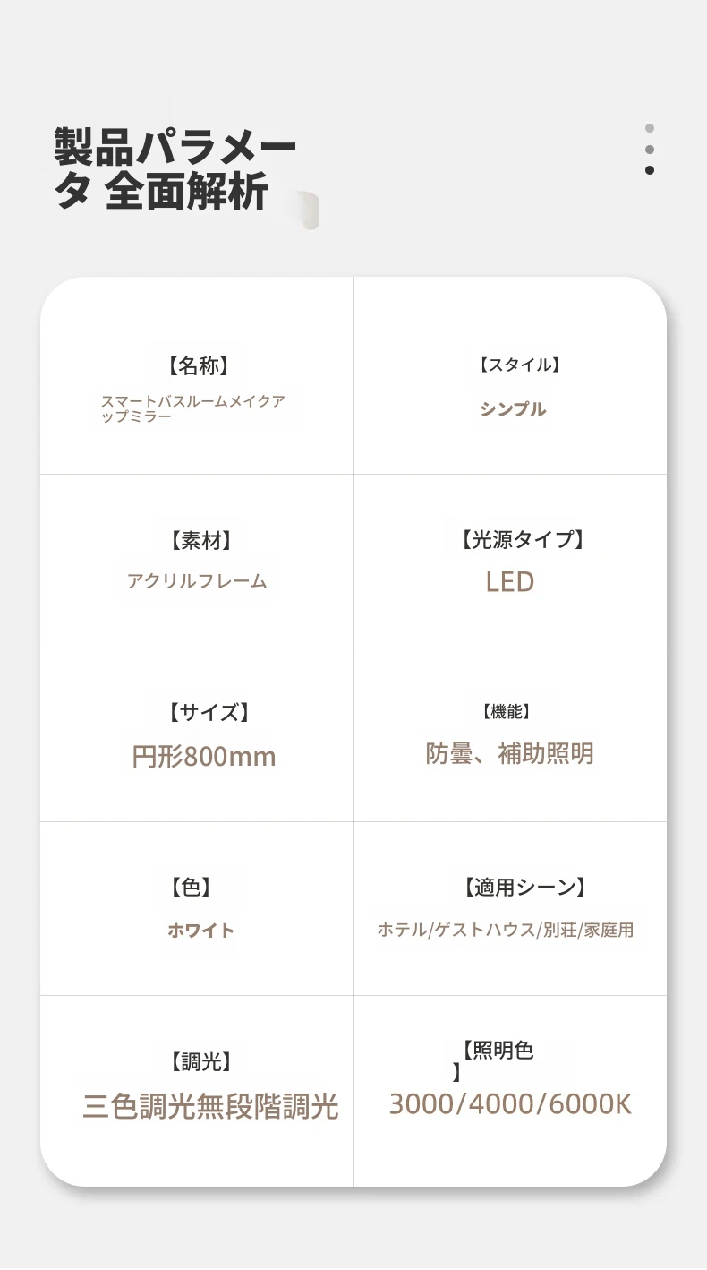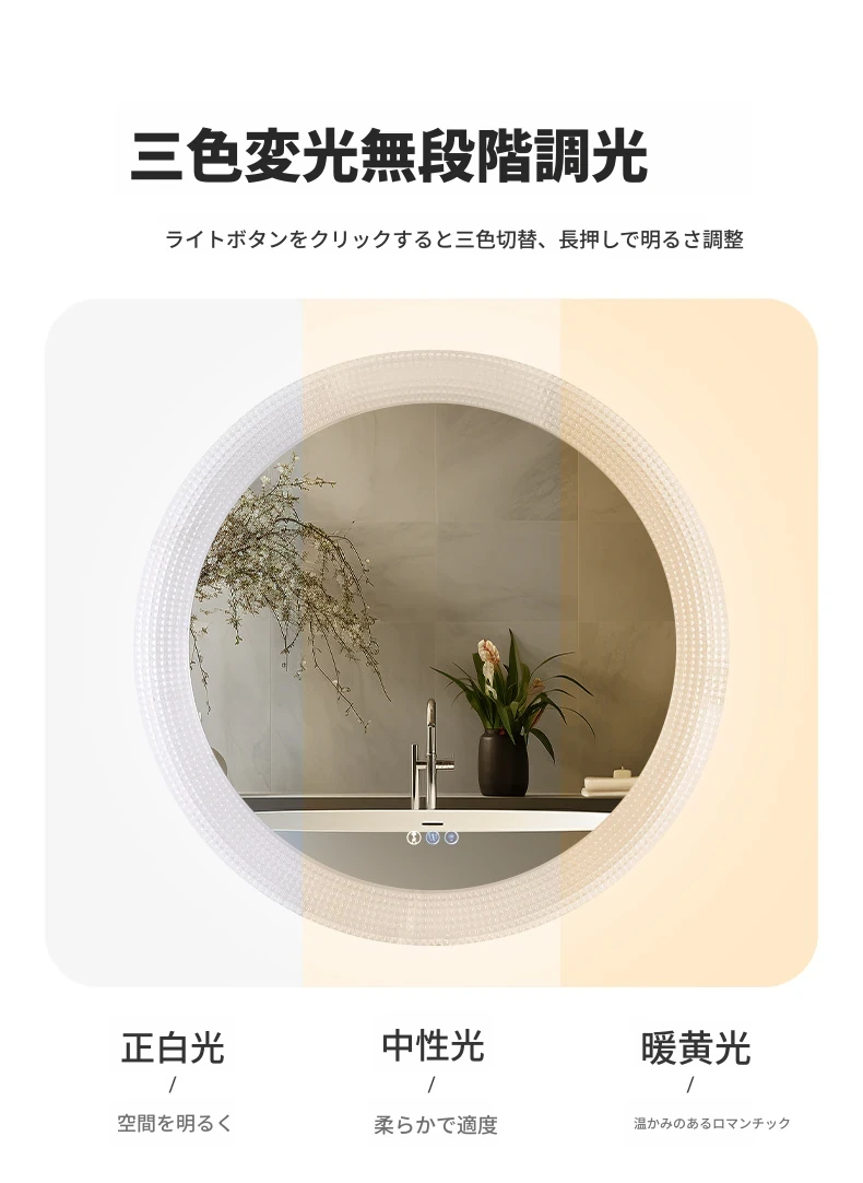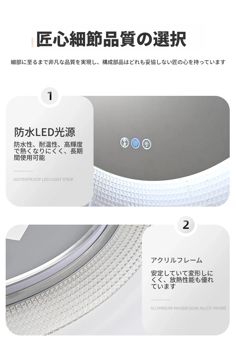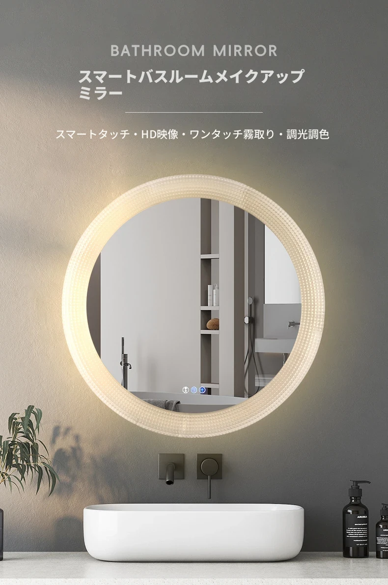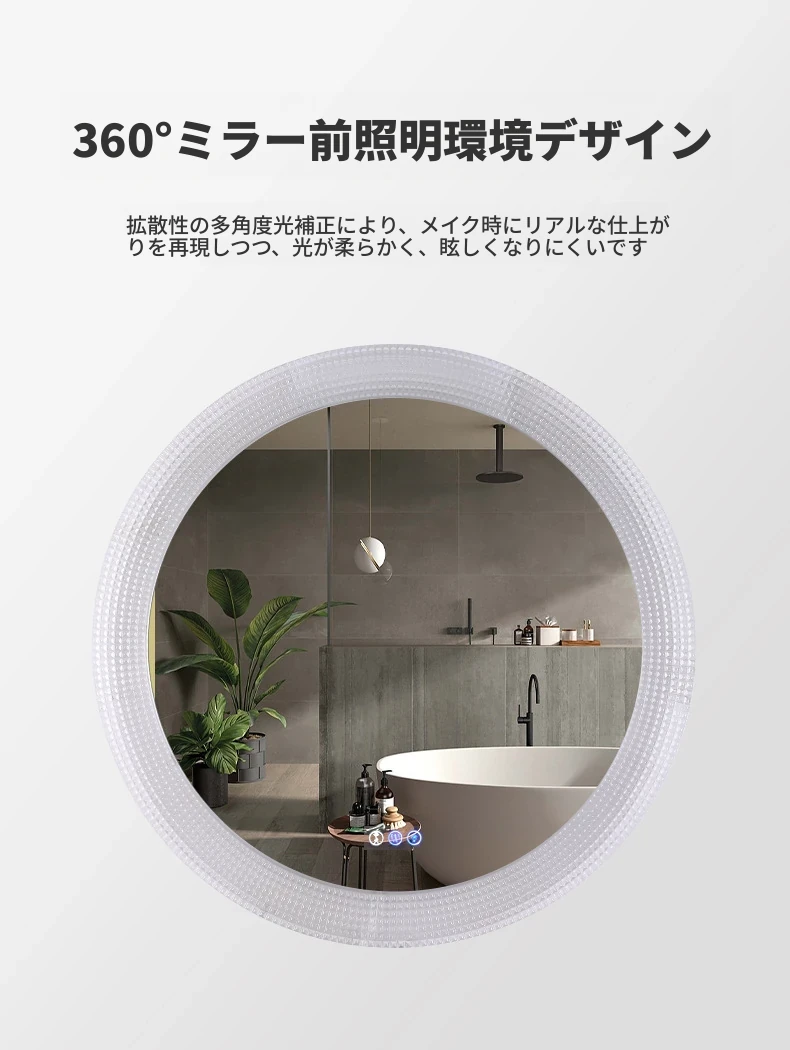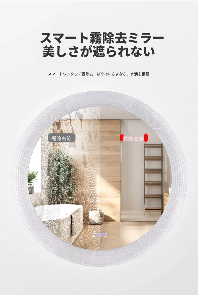 FALVLITEスマートミラー LED防曇機能付き!おしゃれな壁掛けバスルームミラー、明るい照明で空間を演出。浴室に最適な装飾ミラーで、毎日のビューティーケアを格上げ!