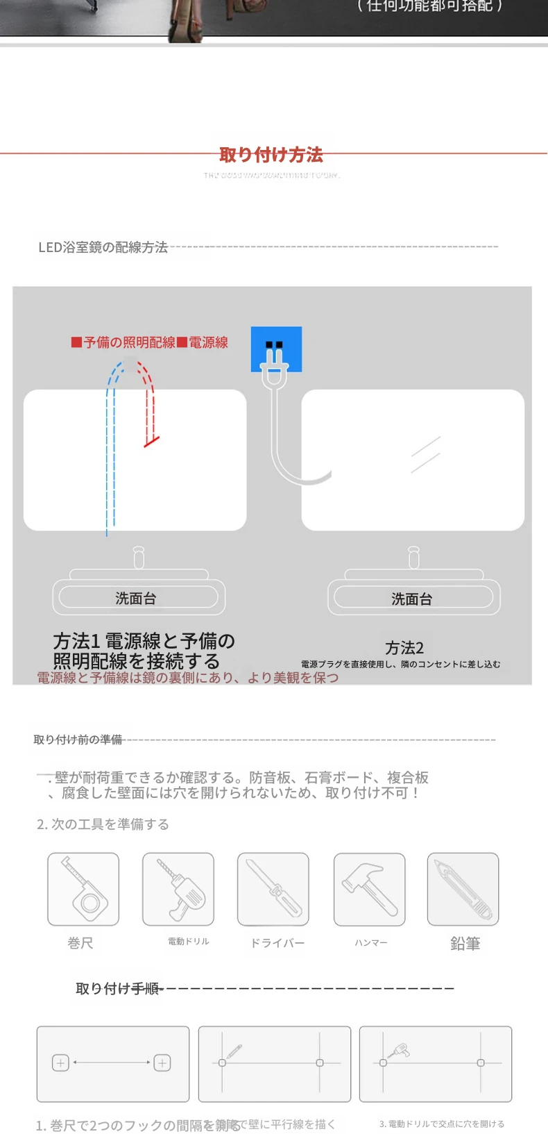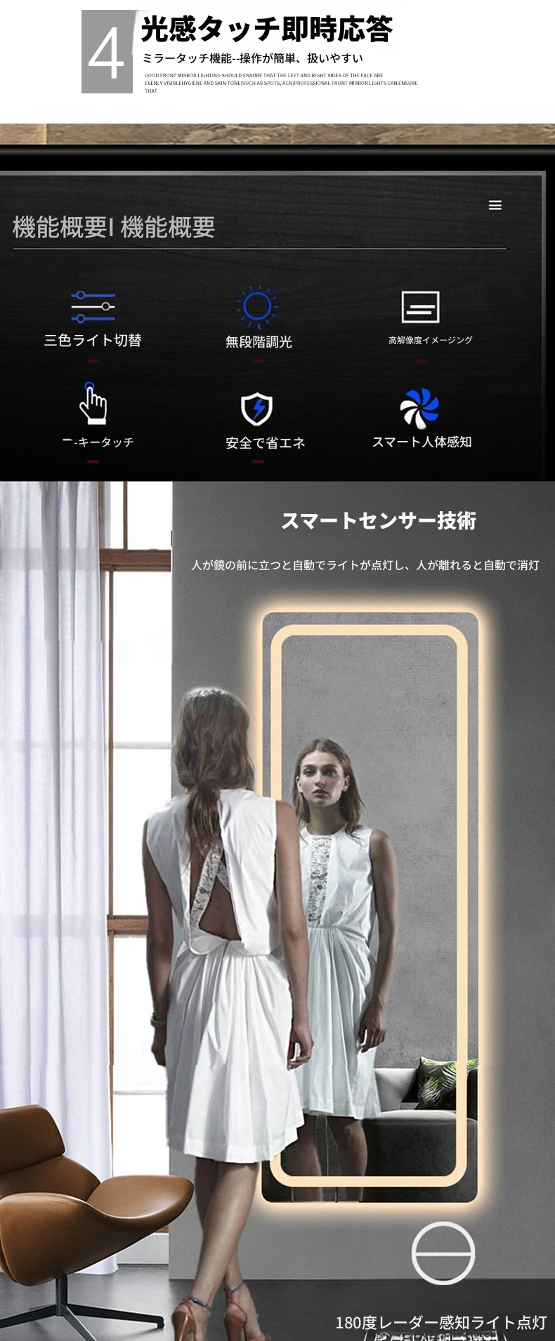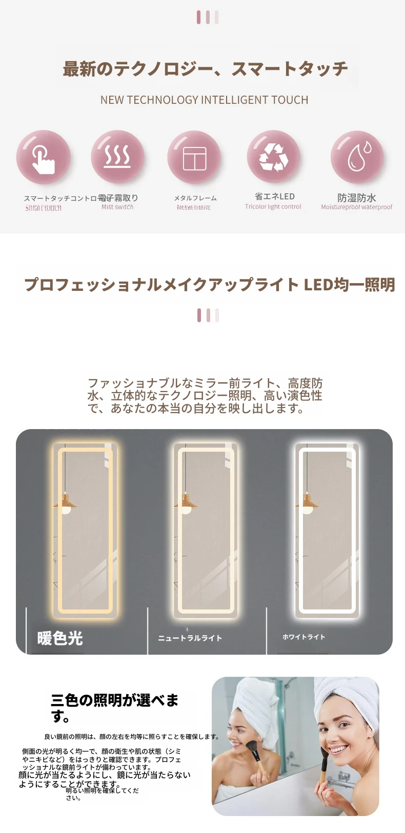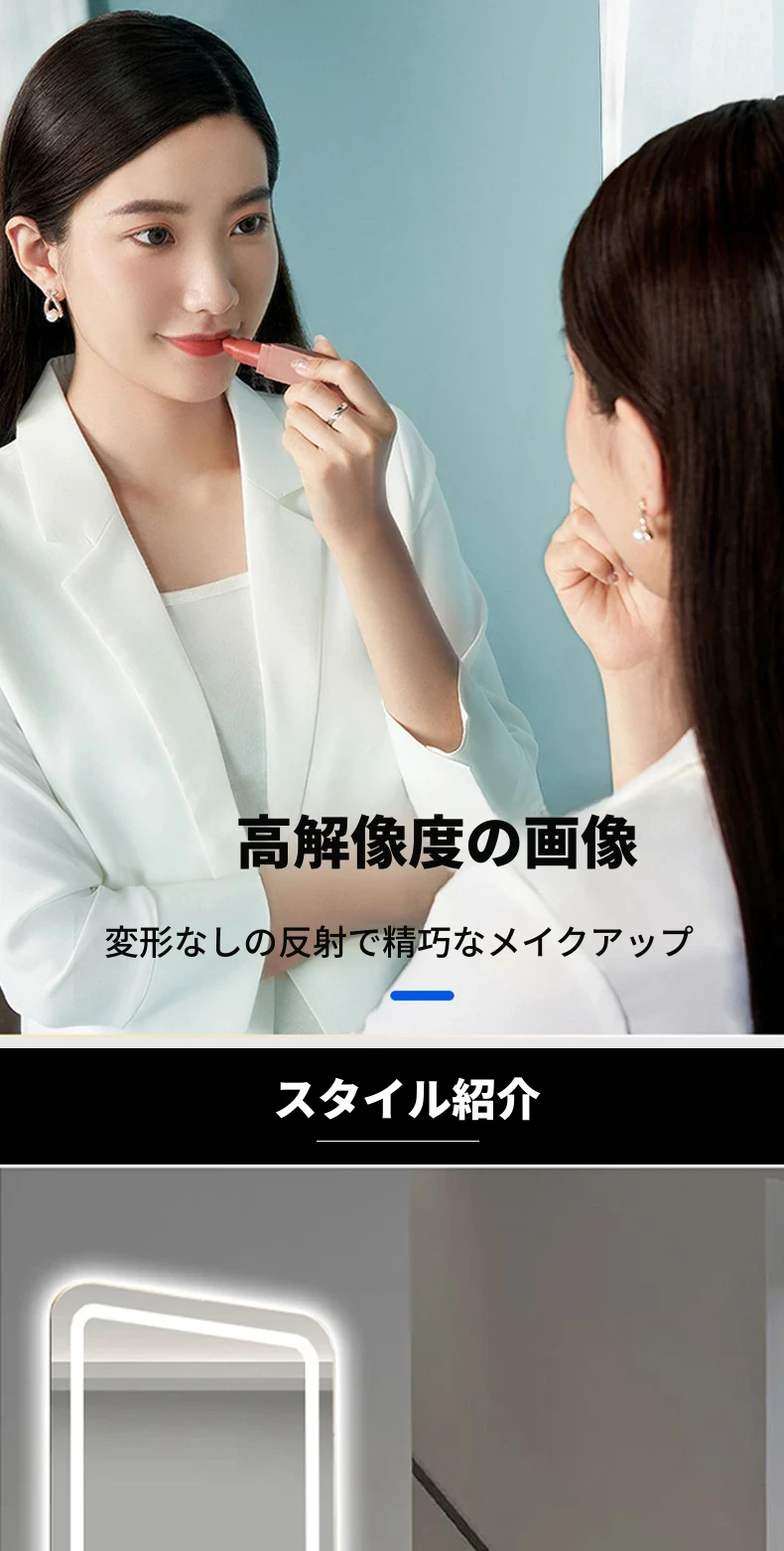 FALVLITE全身鏡・ドレッシングミラー・スマートLEDタッチスクリーン・壁掛け式・光る化粧ミラー・おしゃれな入居用ミラー!自分のスタイルを引き立てる、洗練されたデザインで毎日のコーディネートを楽しく!