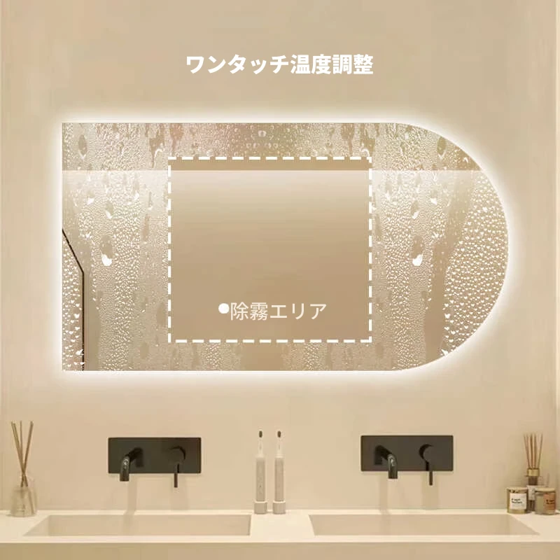 50*90デュアルタッチ3色+時間温度+霧取り 無段階調光