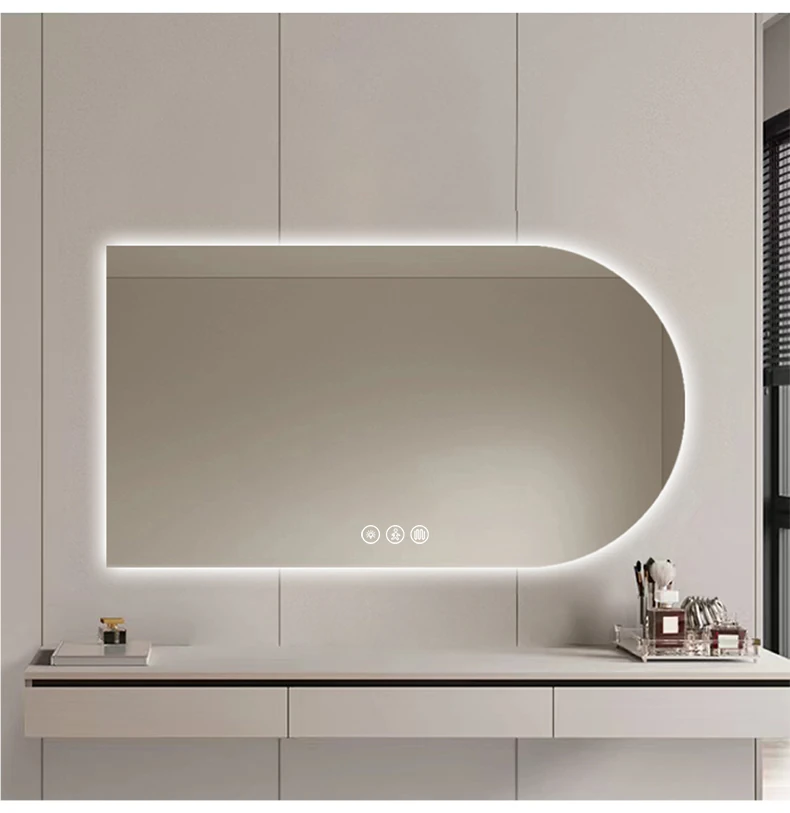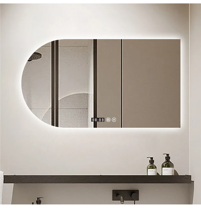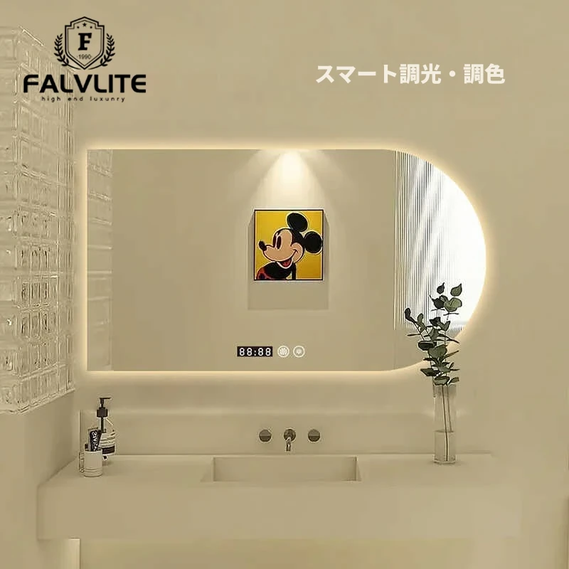 FALVLITEクリーニングクリーム風アーチ型バスルームミラー - スマートタッチスクリーン、曇り防止機能付きLED照明で洗面台が一層スタイリッシュに!