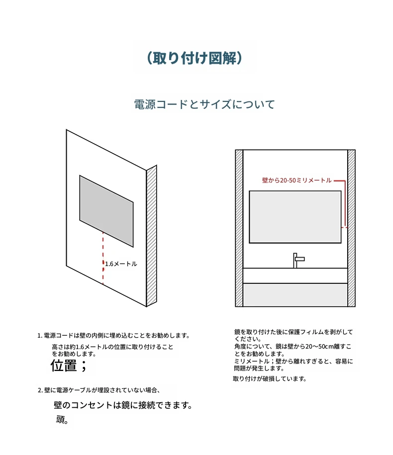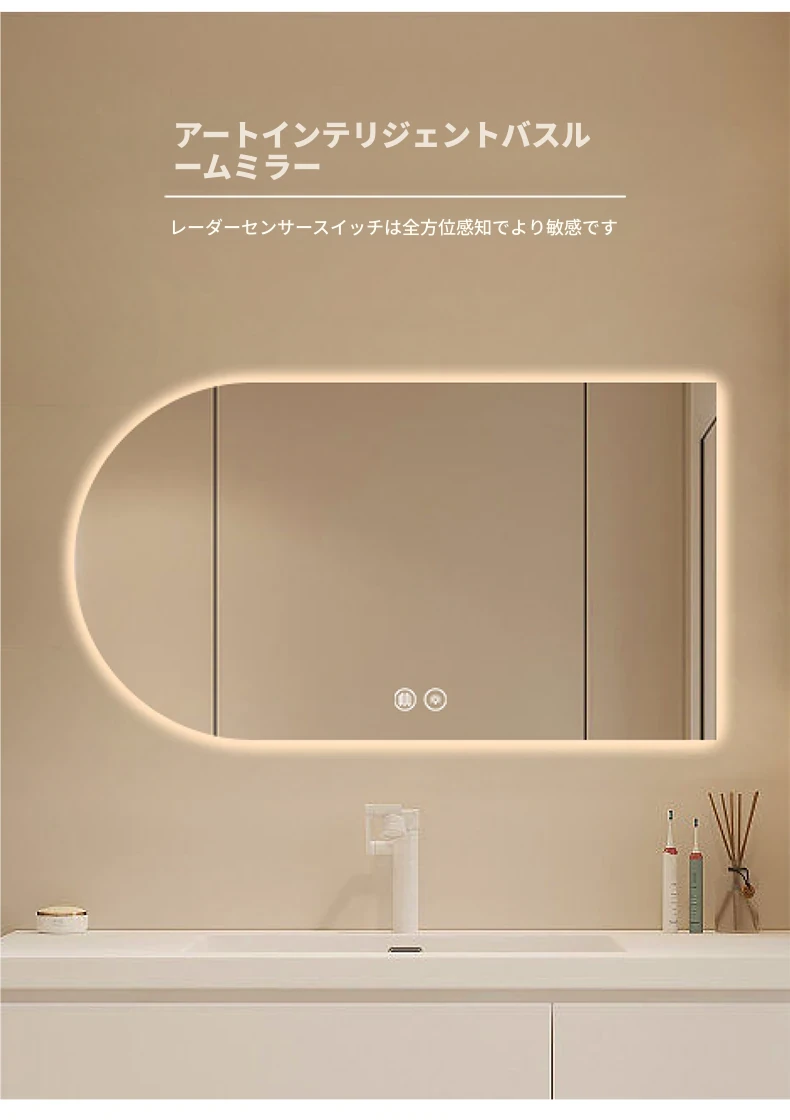 50*80デュアルタッチ3色+人体感知+霧取り 無段階調光