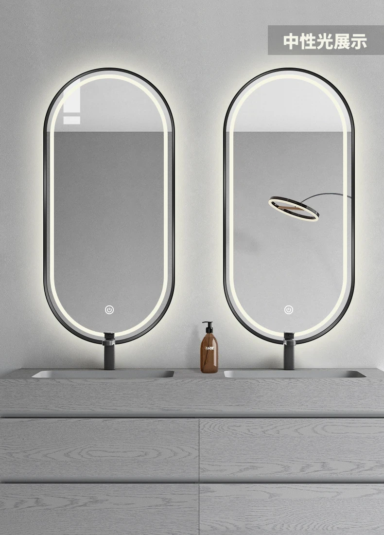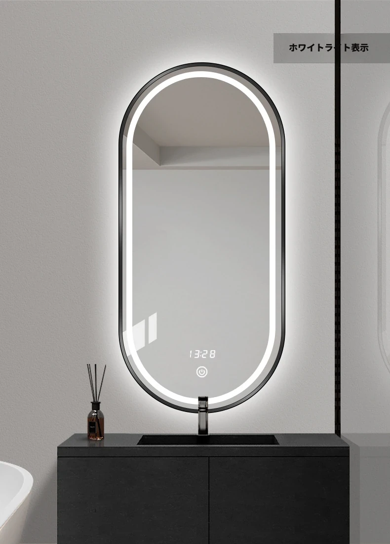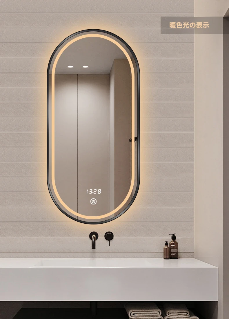 FALVLITE バスルームミラー LED タッチスクリーン 壁掛け 洗面所用 オーバル スマートミラー - スタイリッシュで機能的、毎日の美容ルーチンを格上げ!