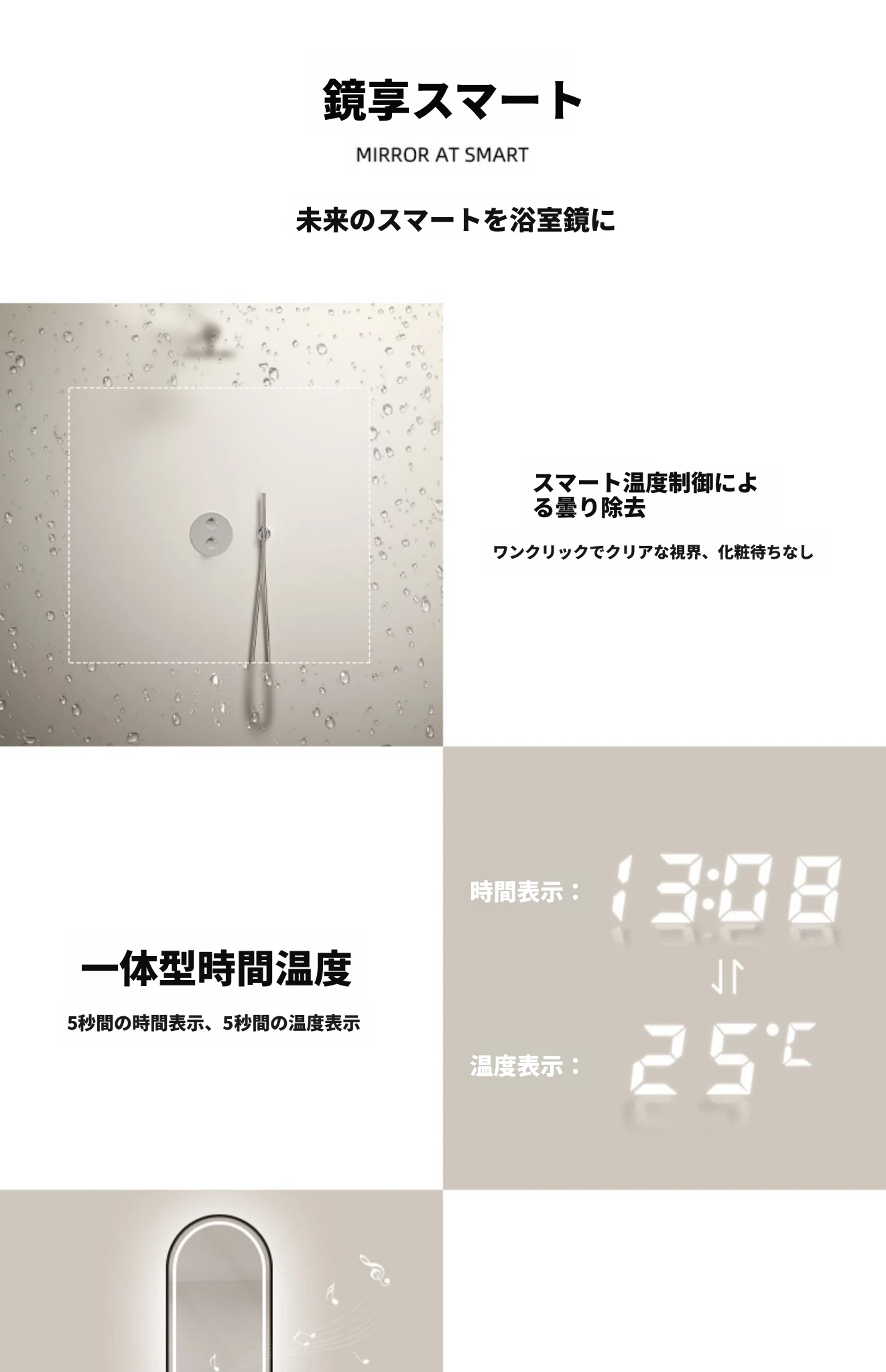 40*60三色ライト+時間温度+除霧 【公式正品】