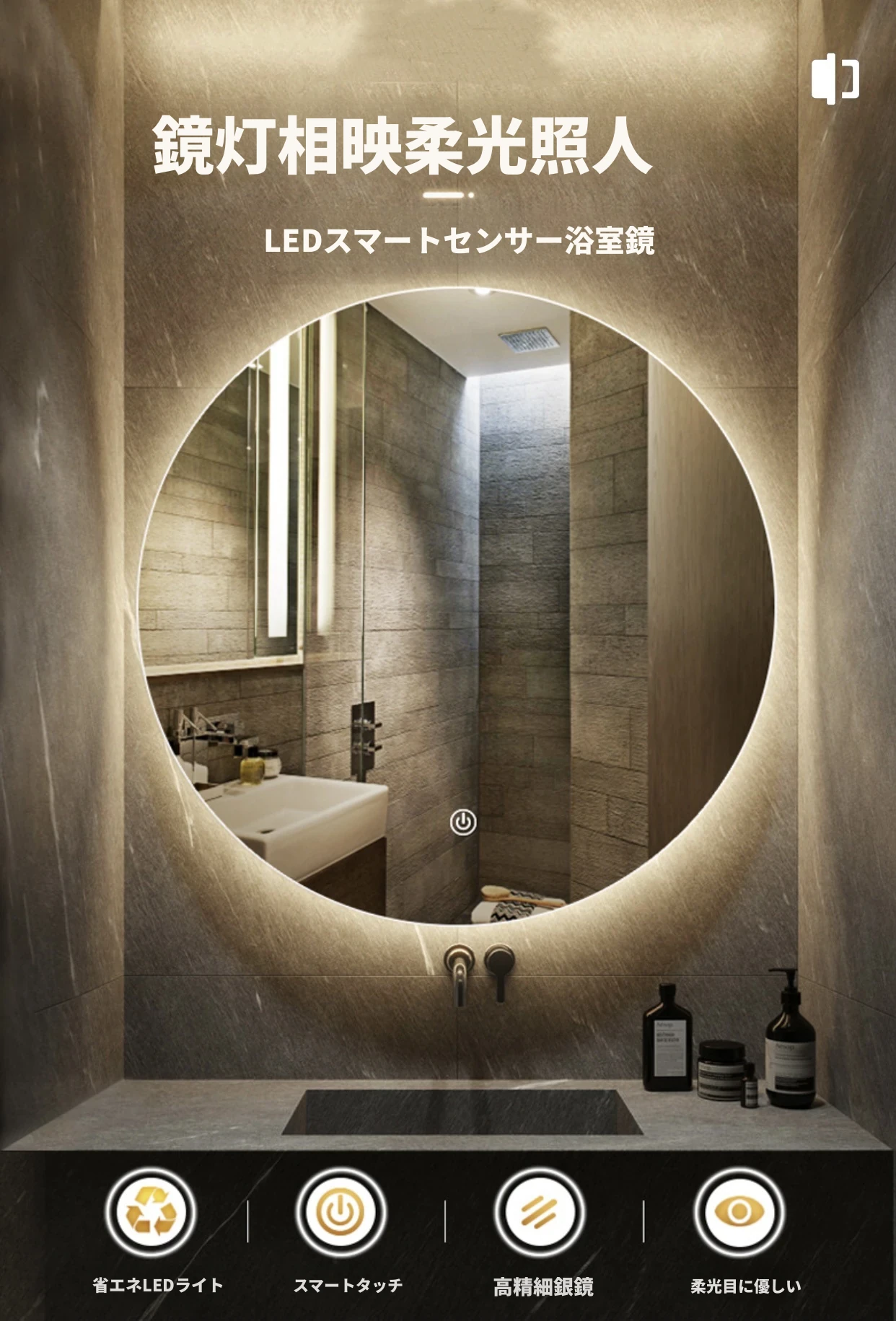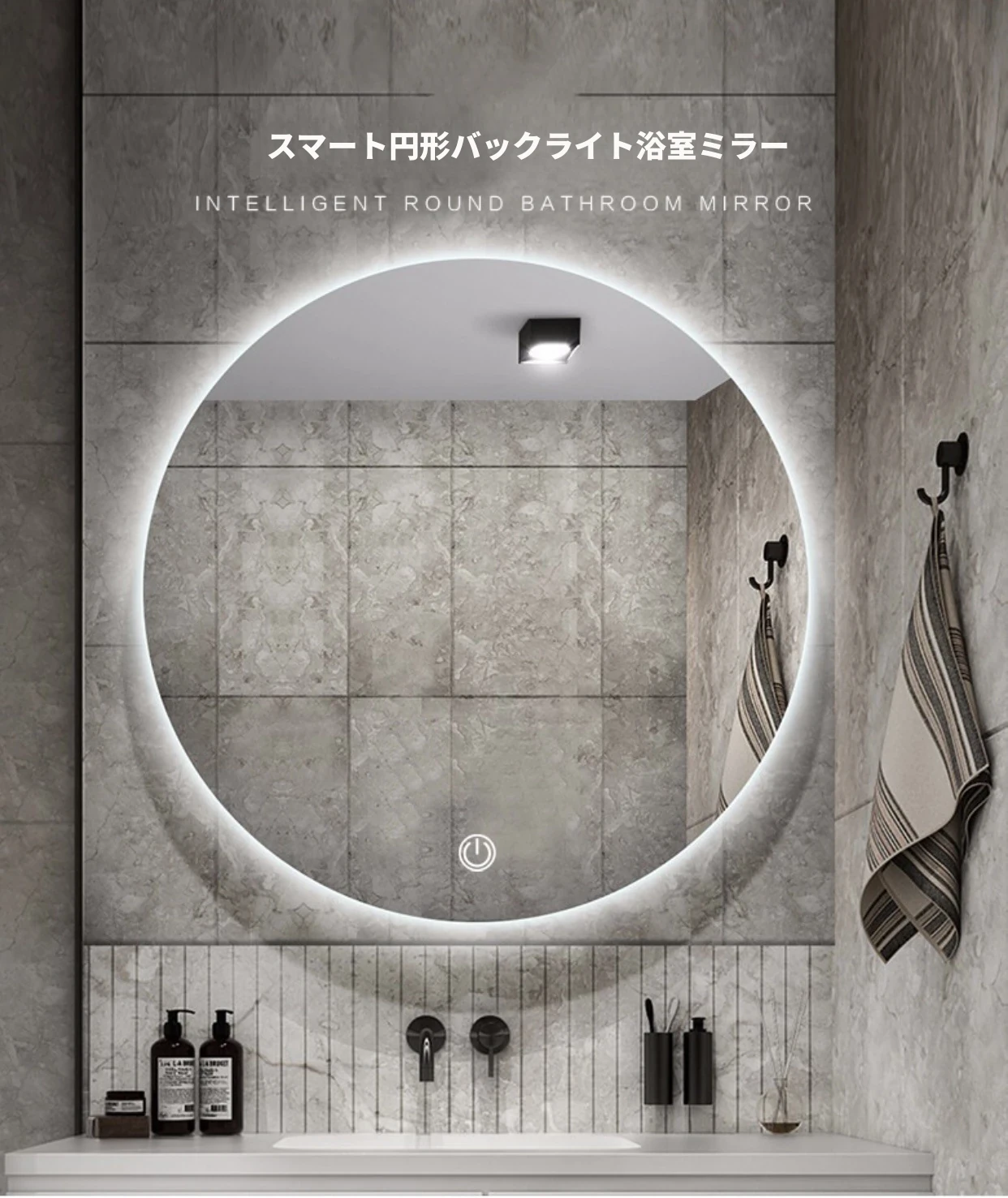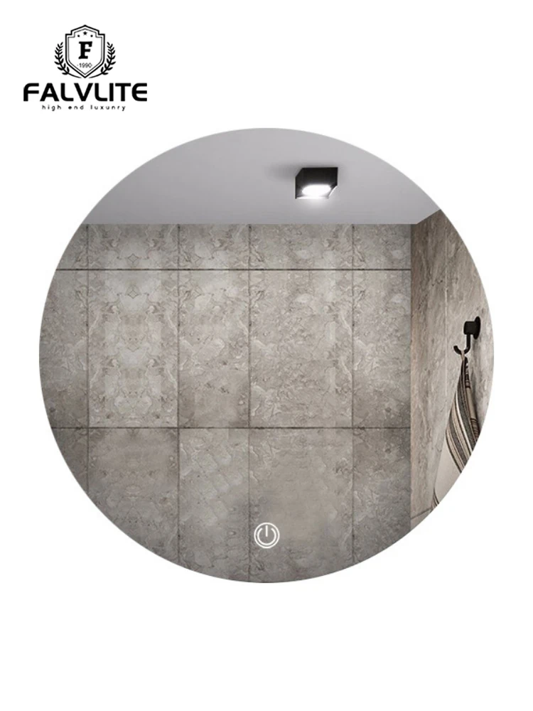 FALVLITE スマートバスルームミラー LEDタッチスクリーン付き防曇機能付き壁掛け丸型ミラー - 明るい照明で毎日のケアをサポート!