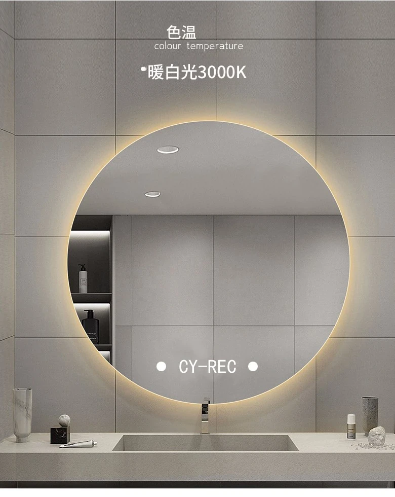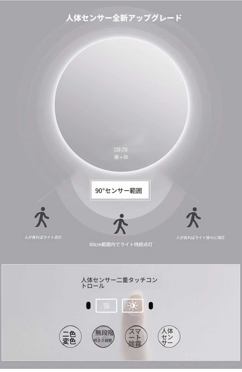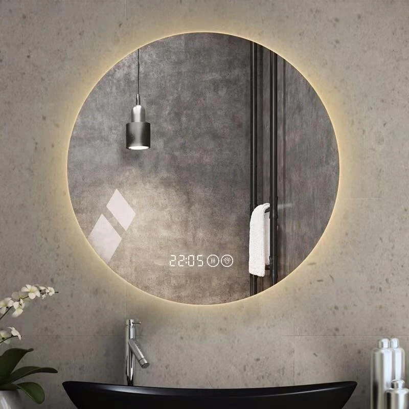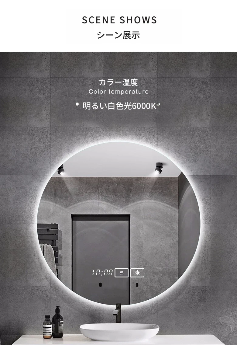 FALVLITE スマートバスルームミラー LEDタッチスクリーン付き防曇機能付き壁掛け丸型ミラー - 明るい照明で毎日のケアをサポート!