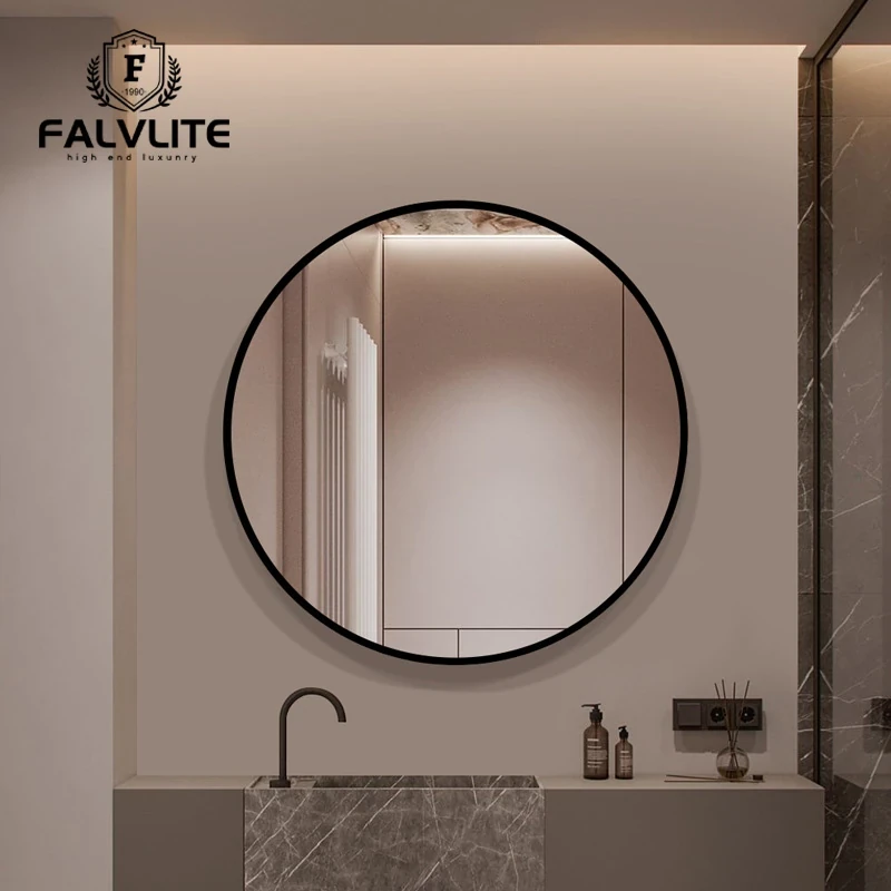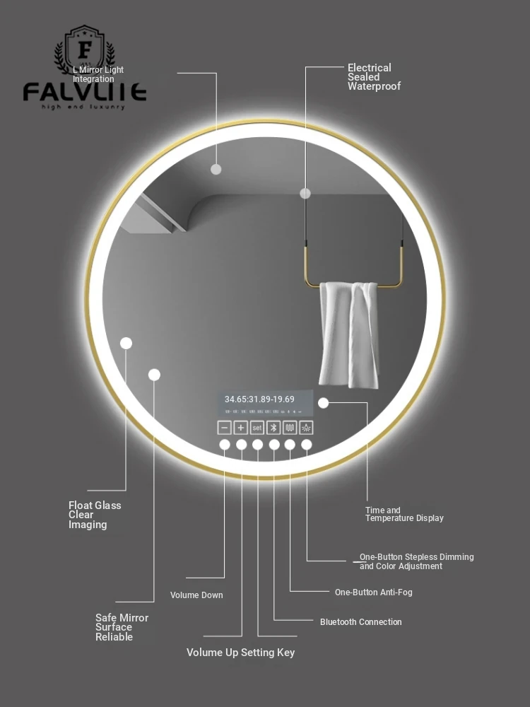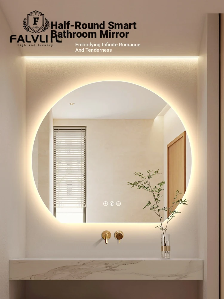 FALVLIT Smart Round Bathroom Mirror with Anti-Fog Feature - Wall-Mounted LED Aluminum Alloy Mirror for Modern Bathrooms