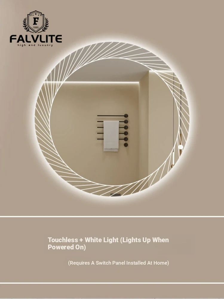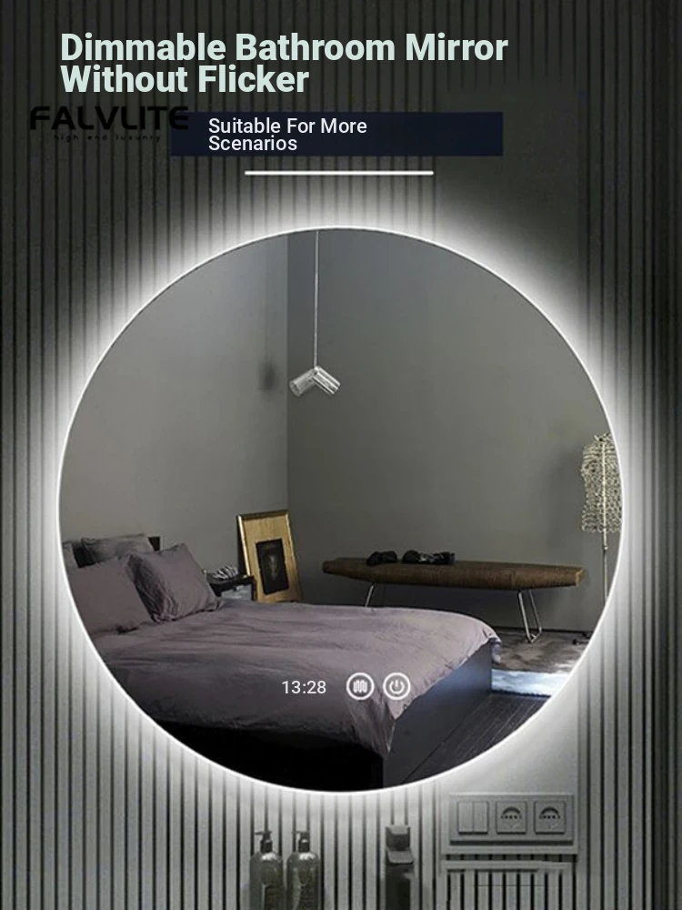 FALVLITE Smart LED Bathroom Mirror - Wall-Mounted Round Vanity Mirror with Lights for a Stylish and Functional Washroom Experience