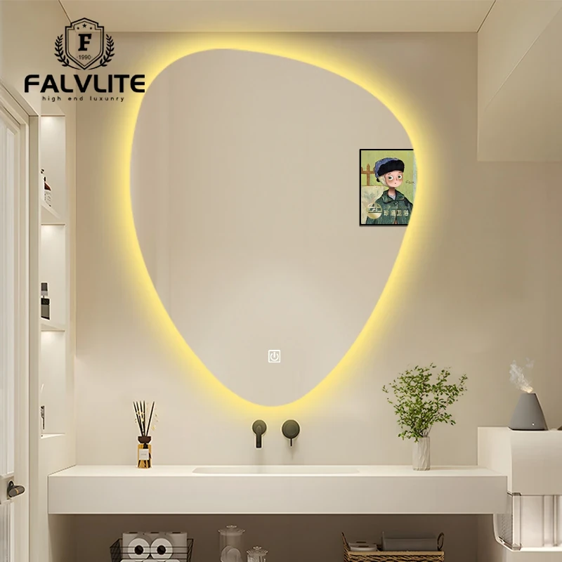 FALVLITE Smart LED Bathroom Mirror - Illuminated, Unique Irregular Shape, Perfect for Home and Hotel Use - Elevate Your Space with Stylish Functionality!