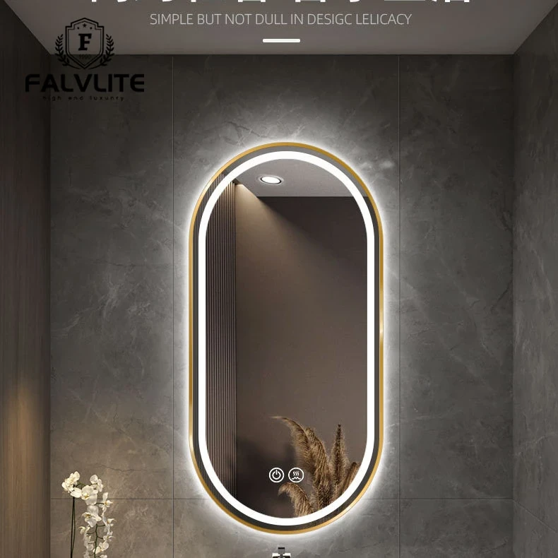 FALVLITE Smart Oval Bathroom Mirror with Frame – Touchscreen LED Vanity Mirror for Wall-Mounted Use, Perfect for Makeup and Grooming