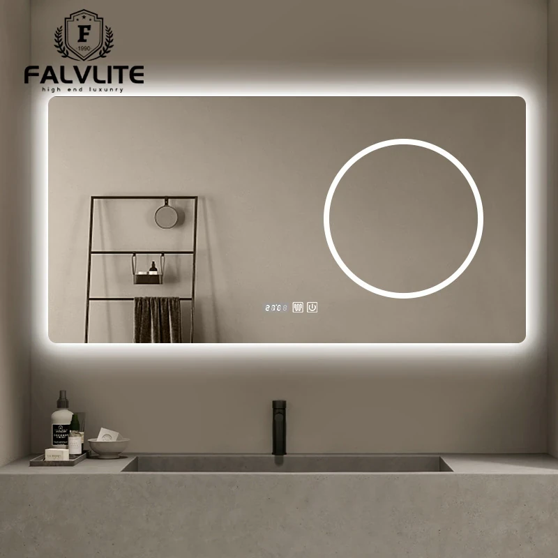 FALVLIT Smart Bathroom Mirror with LED Touch Screen - Anti-Fog Wall-Mounted Vanity Mirror for Modern Bathrooms and Washrooms