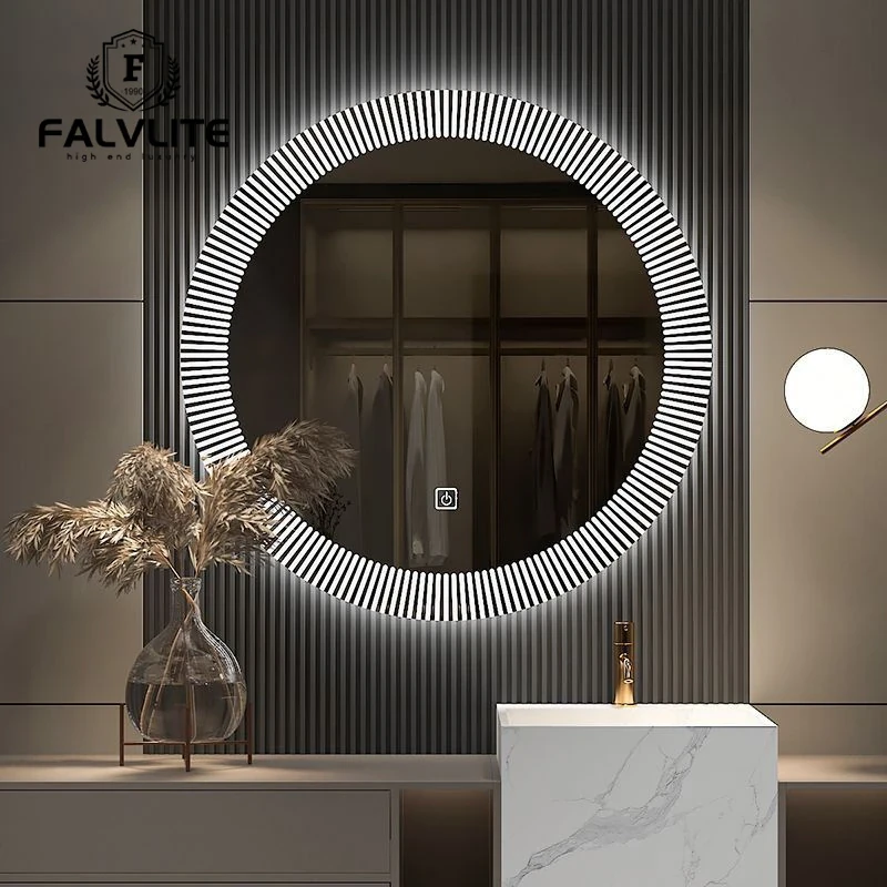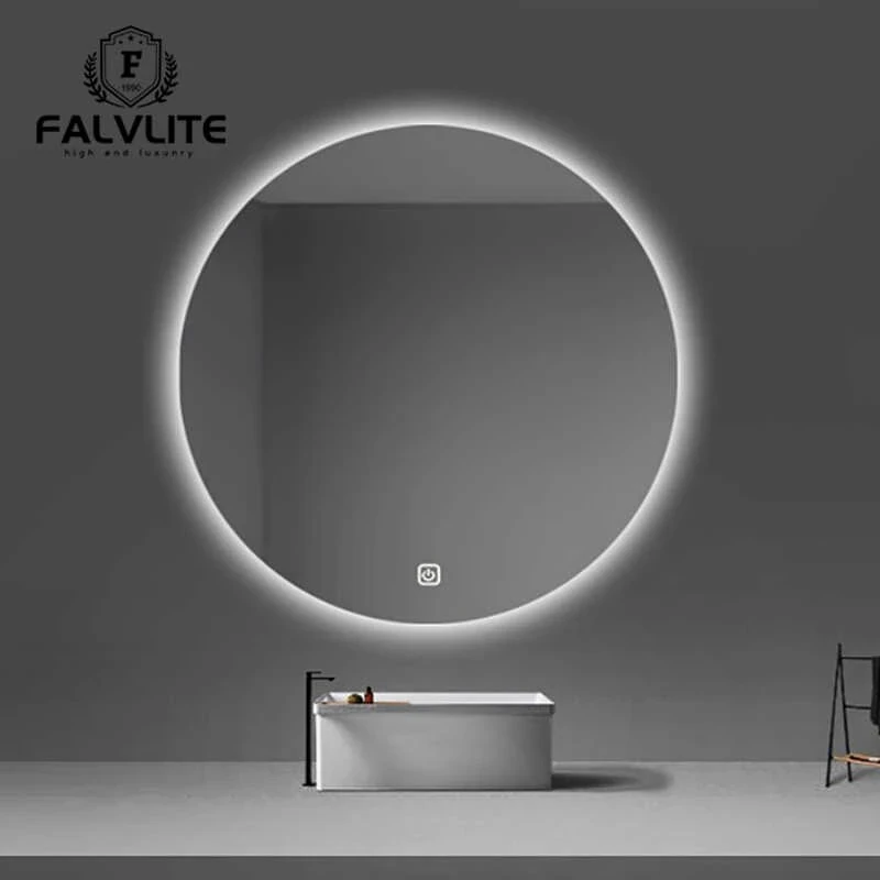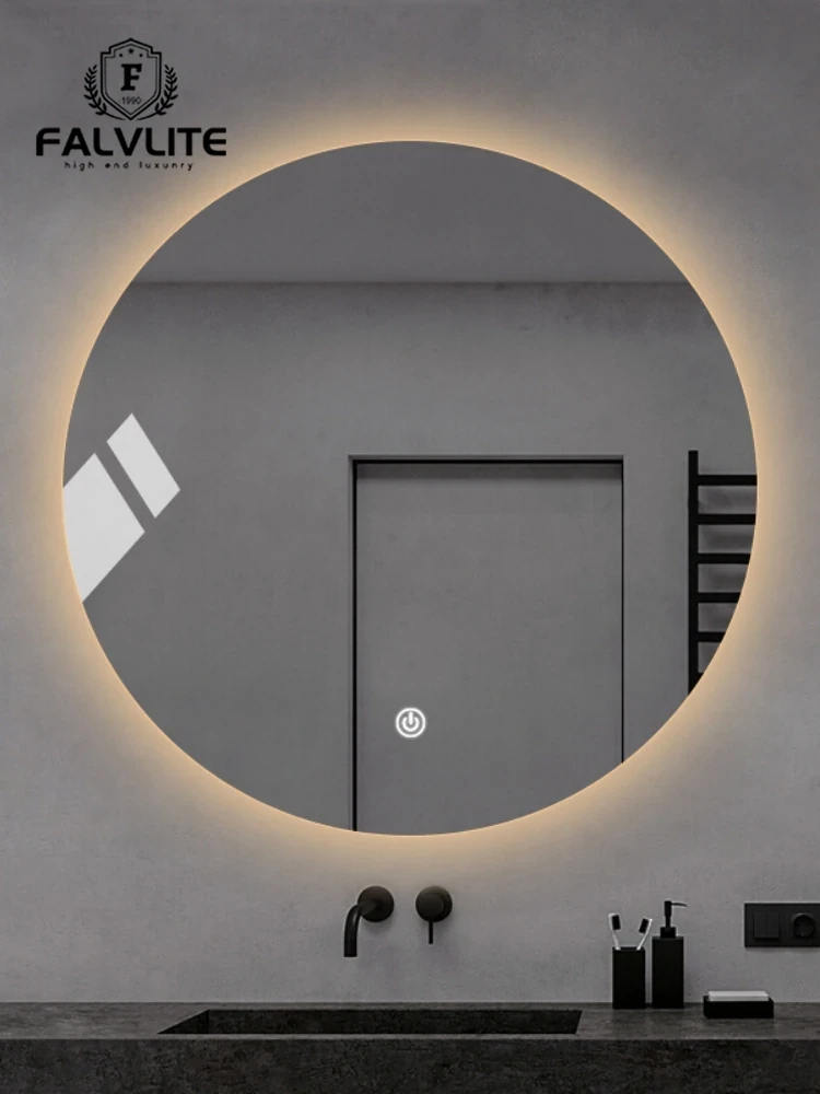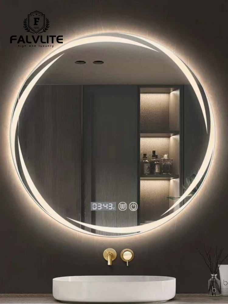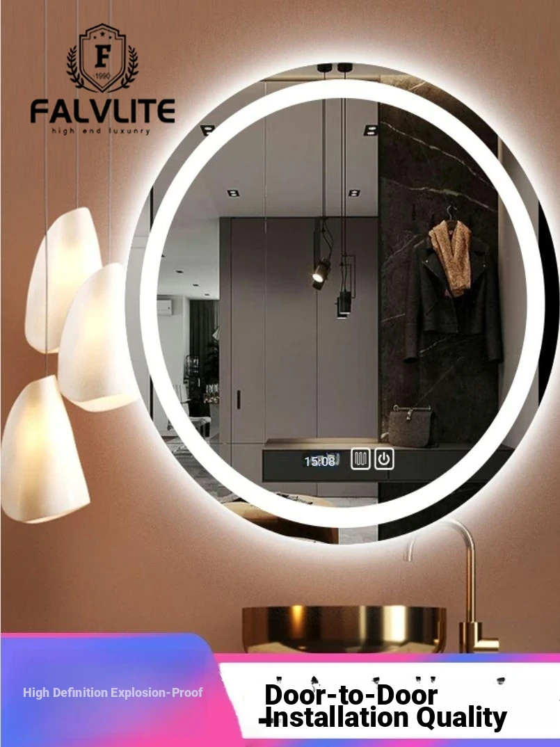 FALVLITE Smart LED Bathroom Mirror with Touch Screen - Anti-Fog Round Wall-Mounted Decorative Mirror for Toilet and Washroom