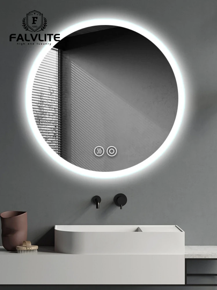 FALVLITE Smart Round Wall-Mounted Bathroom Mirror with LED Touch Screen - Anti-Fog Illuminated Design for a Stylish and Functional Space