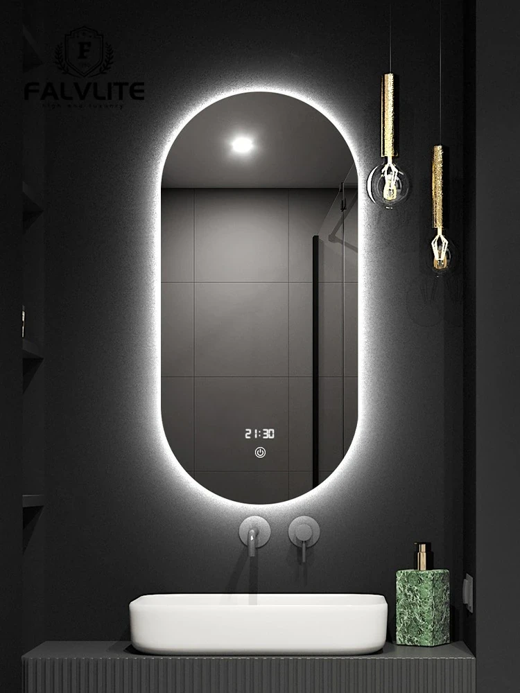 FALVLITE Frameless Oval LED Wall-Mounted Vanity Mirror - Backlit Smart Bathroom Mirror for Elegant Decor and Enhanced Lighting