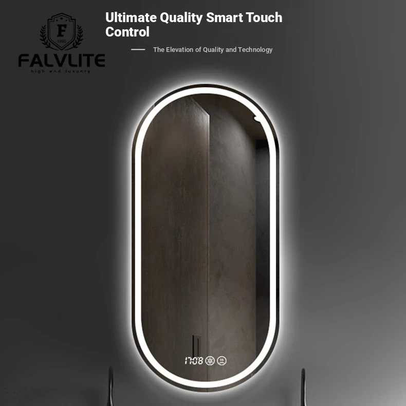 FALVLITE Smart Touch Screen LED Bathroom Mirror - Oval Anti-Fog Makeup Vanity Mirror with Illumination for Effortless Grooming and Reflection