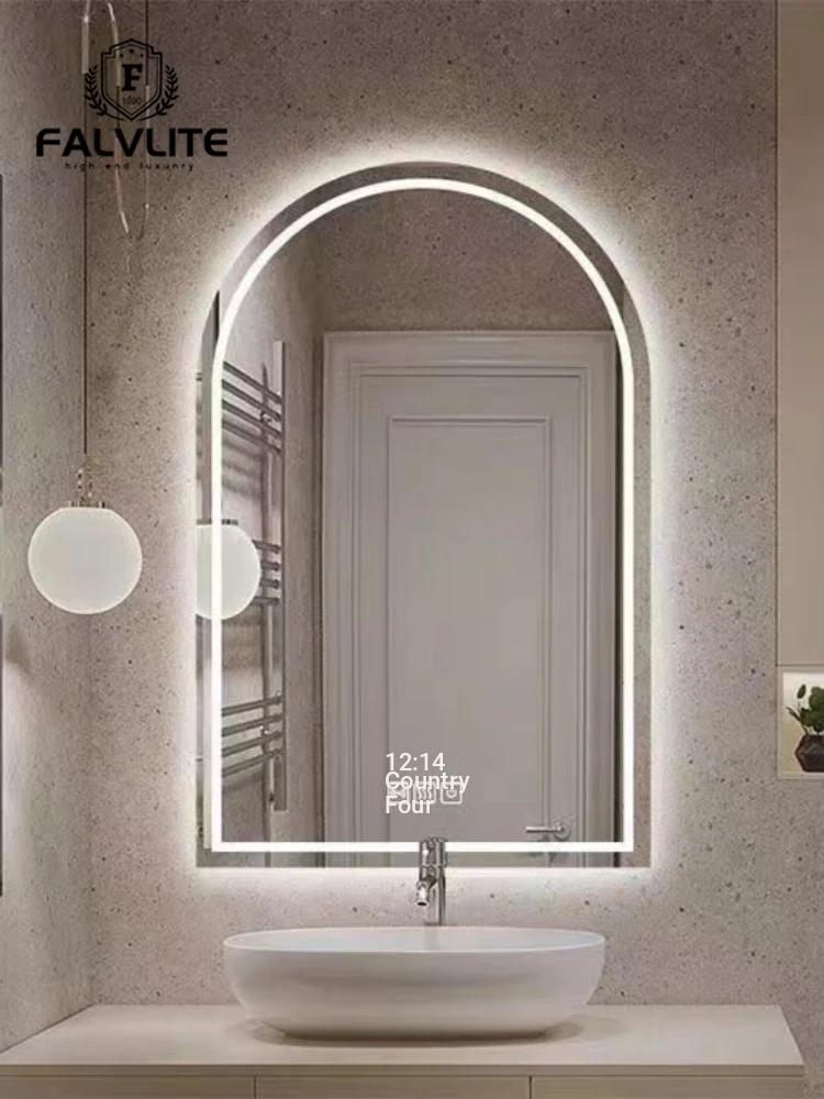 FALVLIT Smart Irregular Half-Circle Bathroom Mirror with LED Touch Screen - Stylish Makeup Mirror for Your Bathroom
