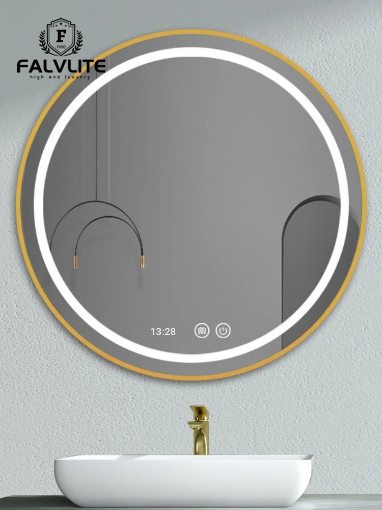 FALVLITE Aluminum Frame LED Backlit Round Wall-Mounted Mirror - Smart Bathroom Vanity Mirror for Enhanced Elegance and Functionality