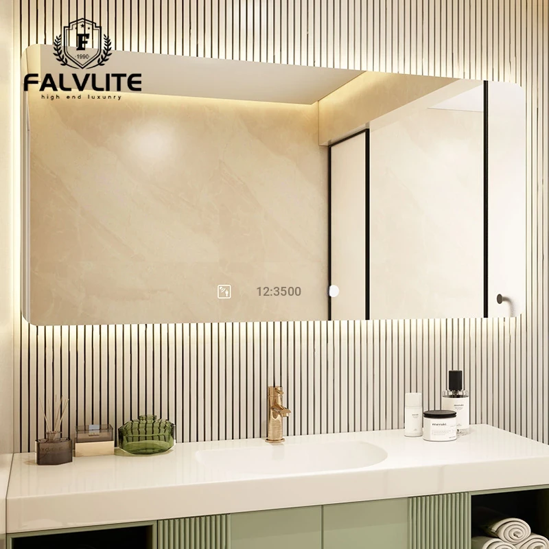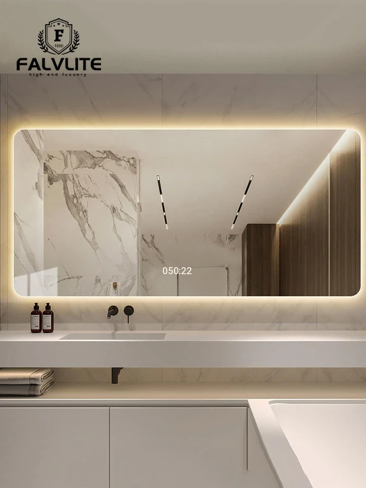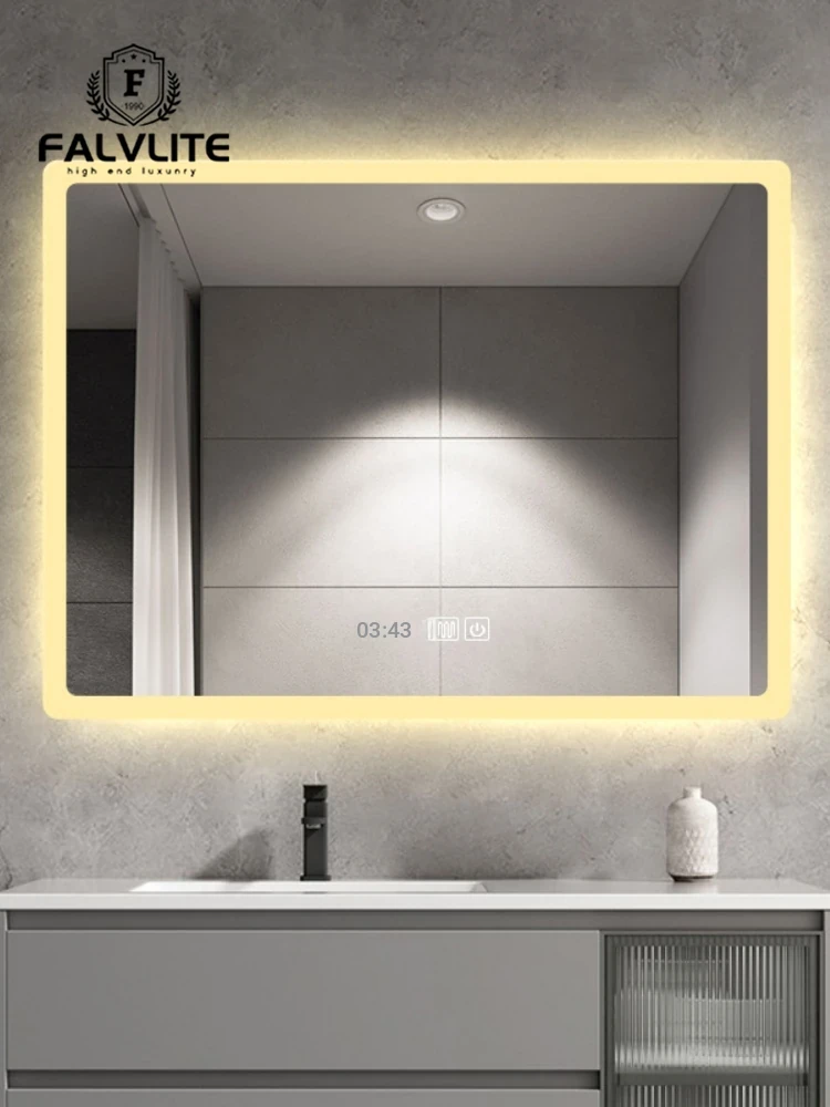 FALVLIT Smart Bathroom Mirror with LED Touch Screen - Anti-Fog Wall-Mounted Vanity Mirror for Modern Bathrooms and Washrooms