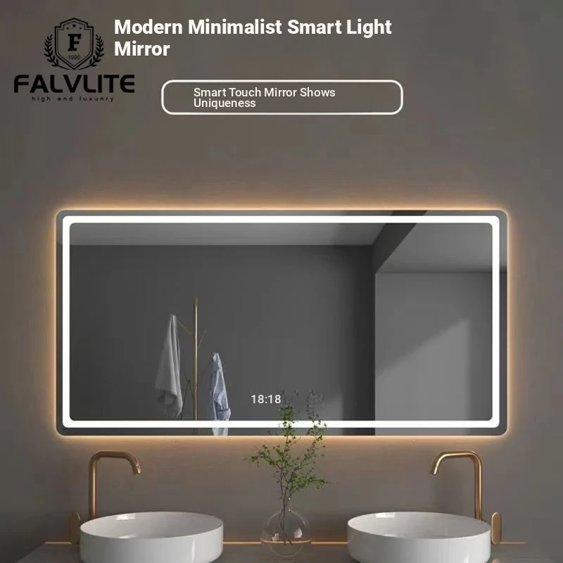 FALVLITE Smart Touchscreen LED Bathroom Mirror with Anti-Fog Feature – Illuminated Wall-Mounted Mirror for a Stylish and Functional Bathroom Experience.