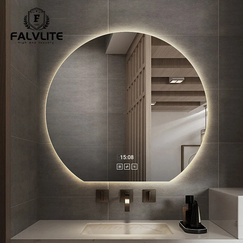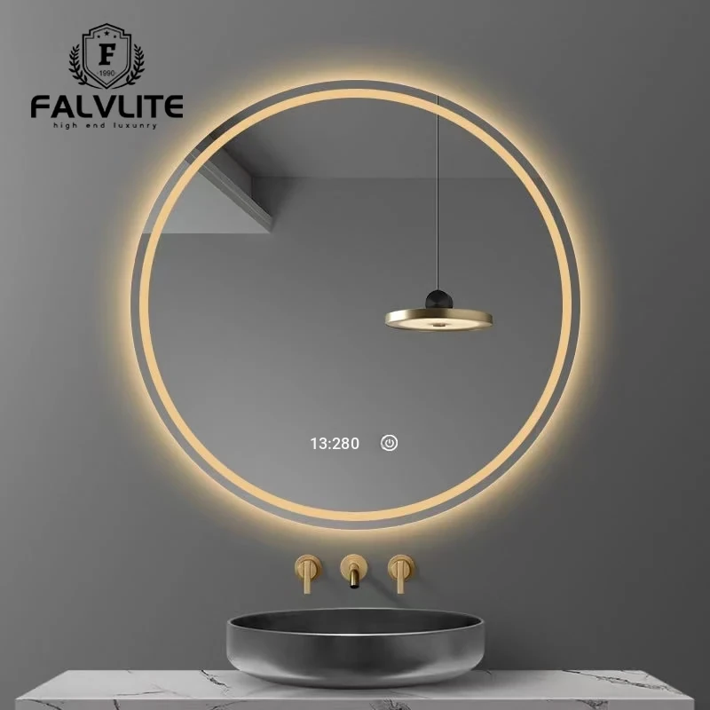 FALVLIT Smart Round Bathroom Mirror - LED Backlit, Anti-Fog, High Definition, Wall-Mounted with Touch Screen for a Luxurious Grooming Experience