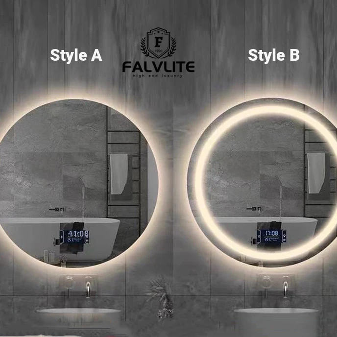 FALVLITE Aluminum Frame LED Backlit Round Wall-Mounted Mirror - Smart Bathroom Vanity Mirror for Enhanced Elegance and Functionality