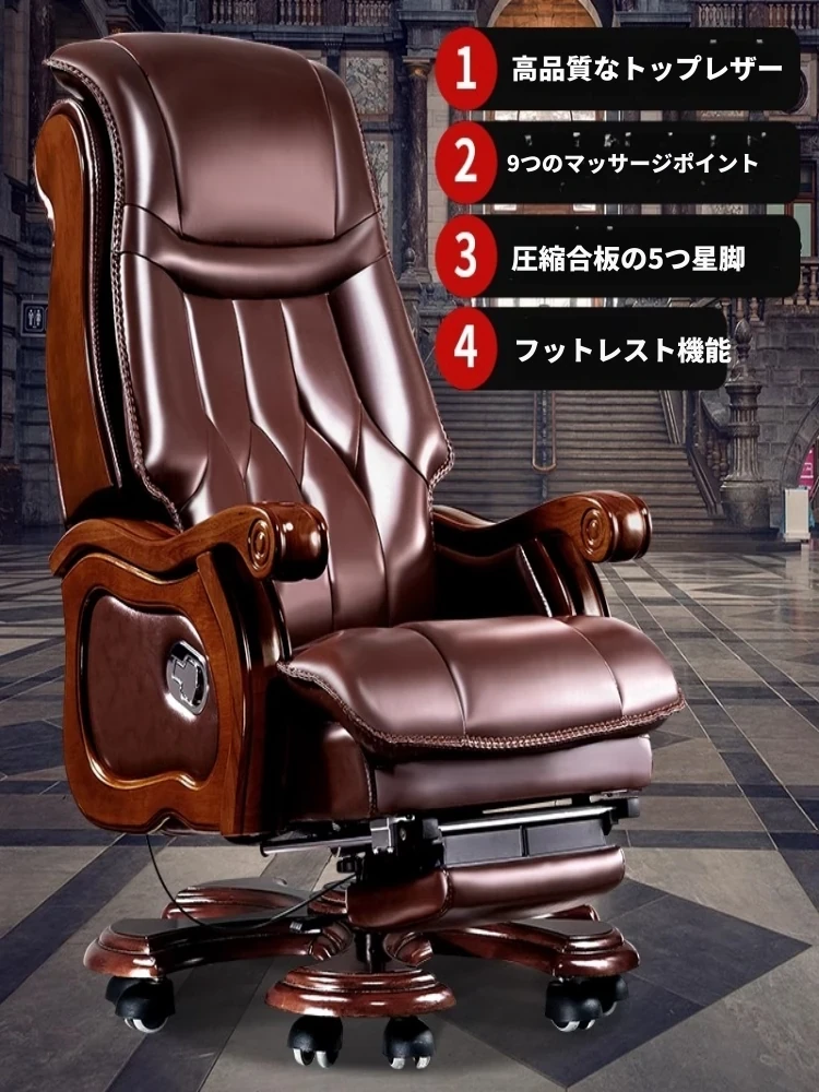 FALVLITE本革製のエグゼクティブチェア|快適なリクライニング機能付きマッサージオフィスチェア|ビジネスシーンに最適な高級感溢れるデザイン!