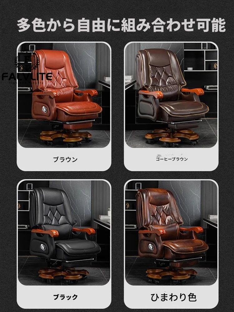 FALVLITE本革製ビジネスオフィスチェア | 長時間の快適座位 | 在宅ワークやデスクワークに最適 | リクライニング機能付きマッサージチェア | 高級感あふれるデザインで、仕事の効率をアップ!