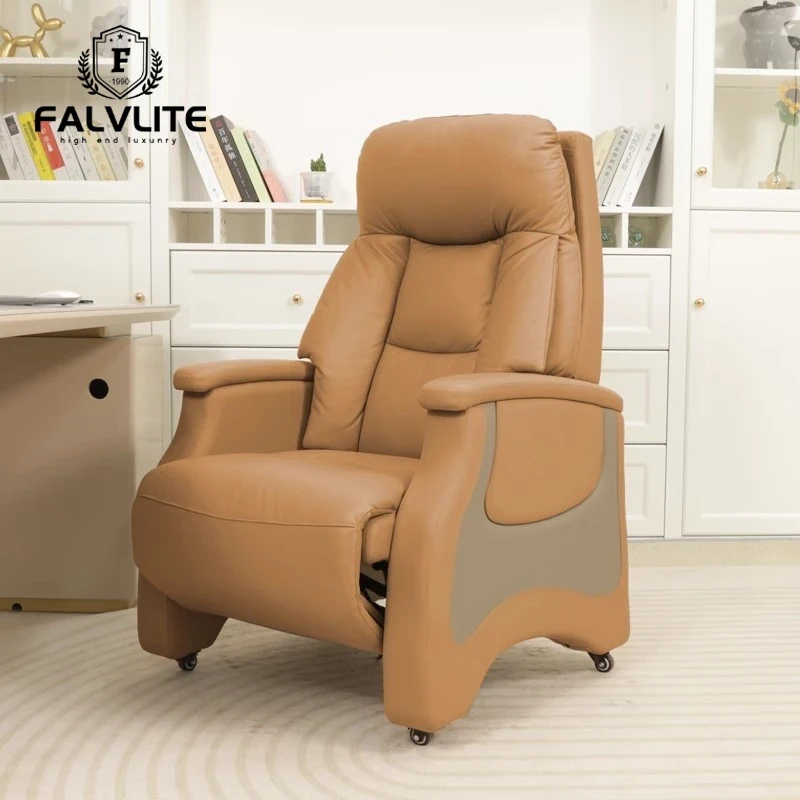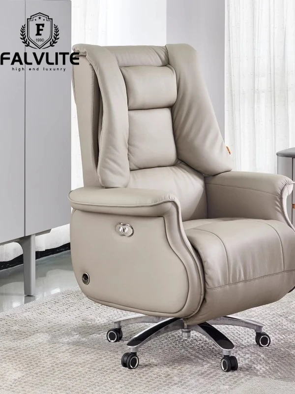 FALVLITE電動オフィスチェア - スマートマッサージ機能付きの本革製リクライニングオフィスチェア。長時間の座り仕事でも快適さを追求した、贅沢な大班椅で理想的なリラックスタイムを実現!