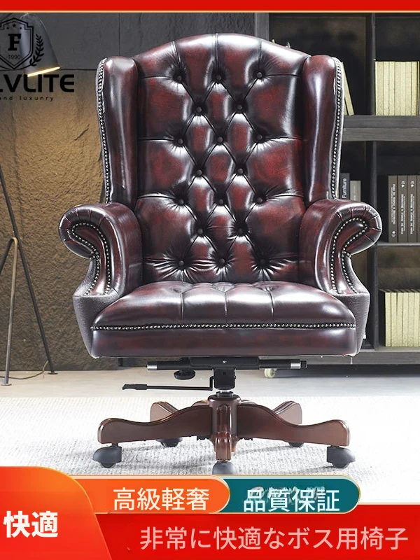 FALVLITE 本革製オフィスチェア - 自宅用・ビジネス用に最適な快適な回転式社長椅子!洗練されたデザインで、最高の座り心地を実現。仕事の効率をアップさせる一品です!