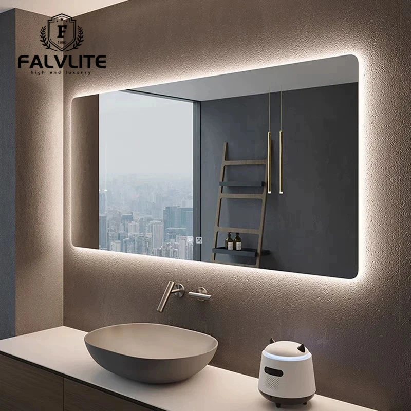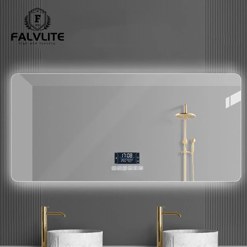 FALVLITEスマートLED防霧バスルームミラー|タッチスクリーン付きの照明ミラー|壁掛けタイプで、毎日の洗面が快適に!湿気の多いバスルームでもクリアな視界を実現。おしゃれなデザインで、インテリアにも最適です!
