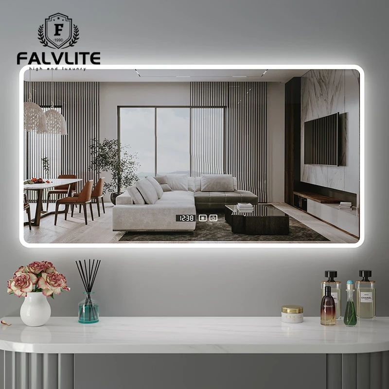 FALVLITE スマートミラー ホテルアパートメント用 丸型・角型・変形デザイン フレーム付き LED照明 壁掛けミラー バスルームに最適!おしゃれで機能的な空間を演出!