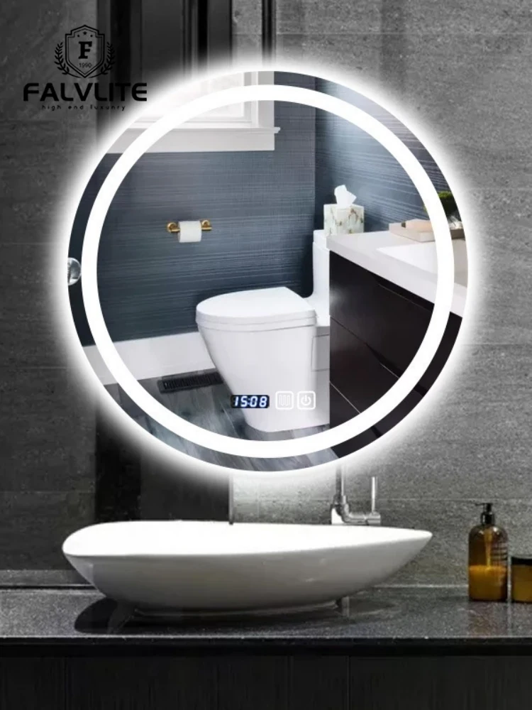 FALVLITE LEDスマート壁掛けミラー - 防曇機能付き、バスルームや洗面台に最適な円形デザイン!明るい照明で、毎日のメイクアップを楽しくサポートします。
